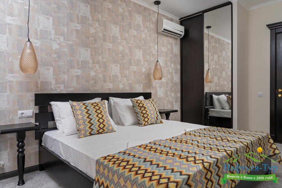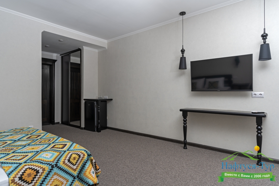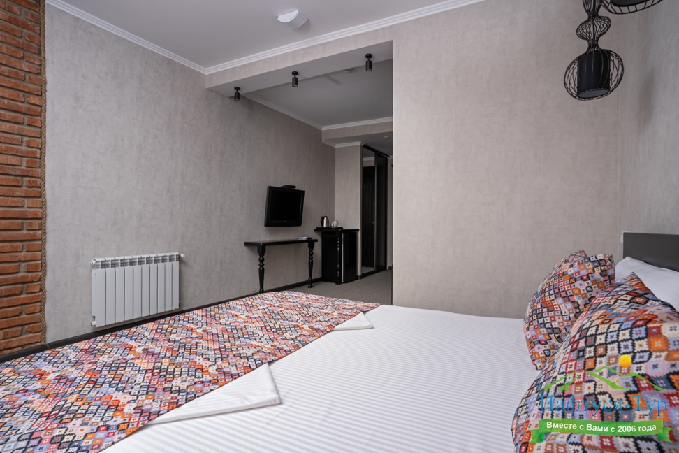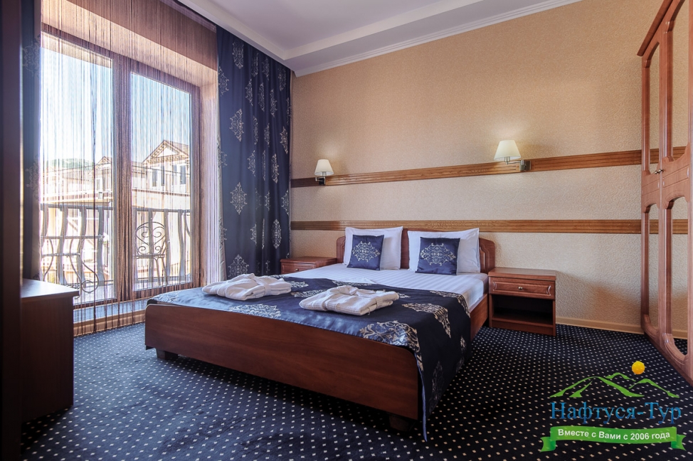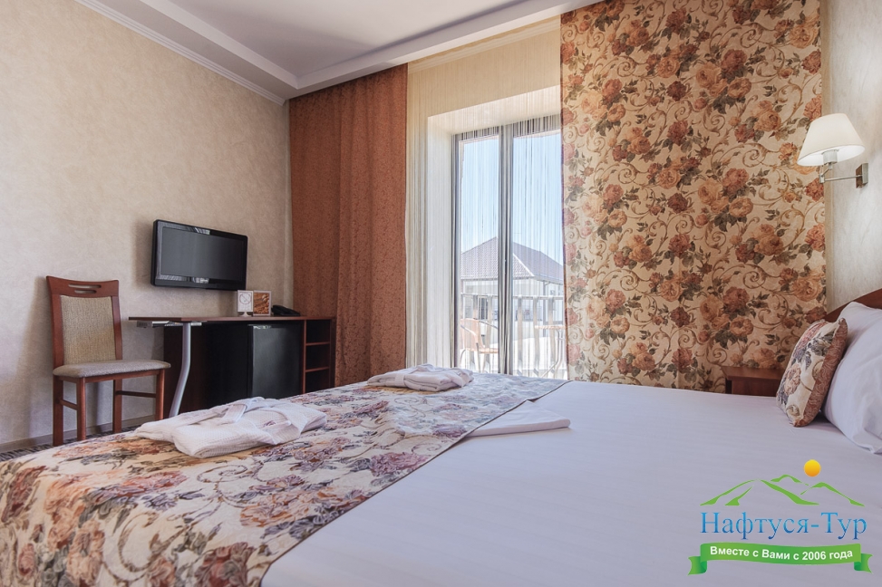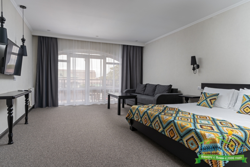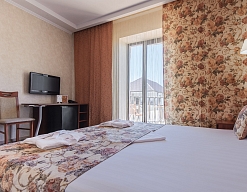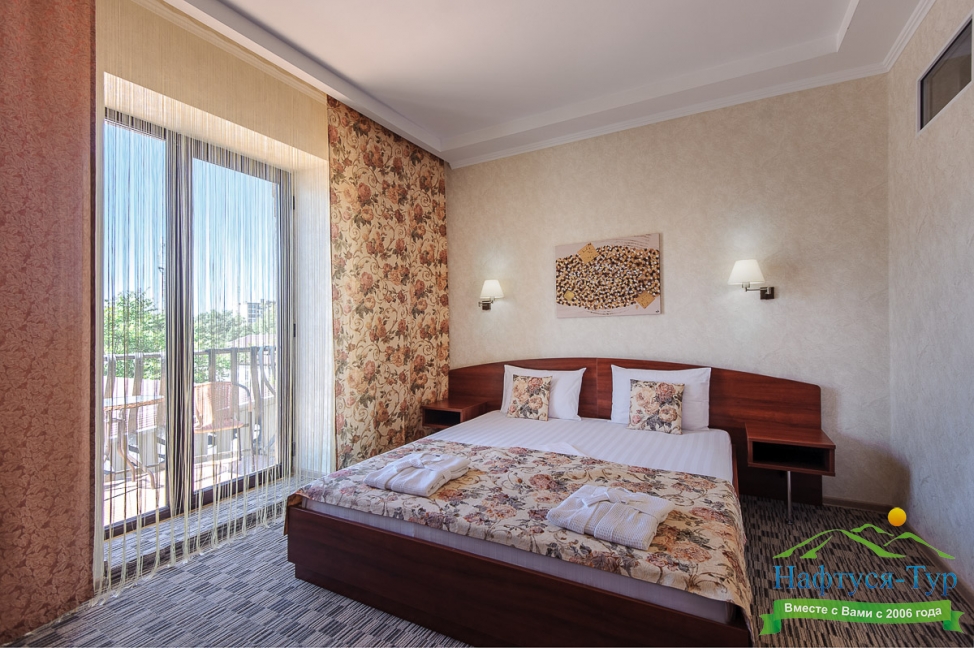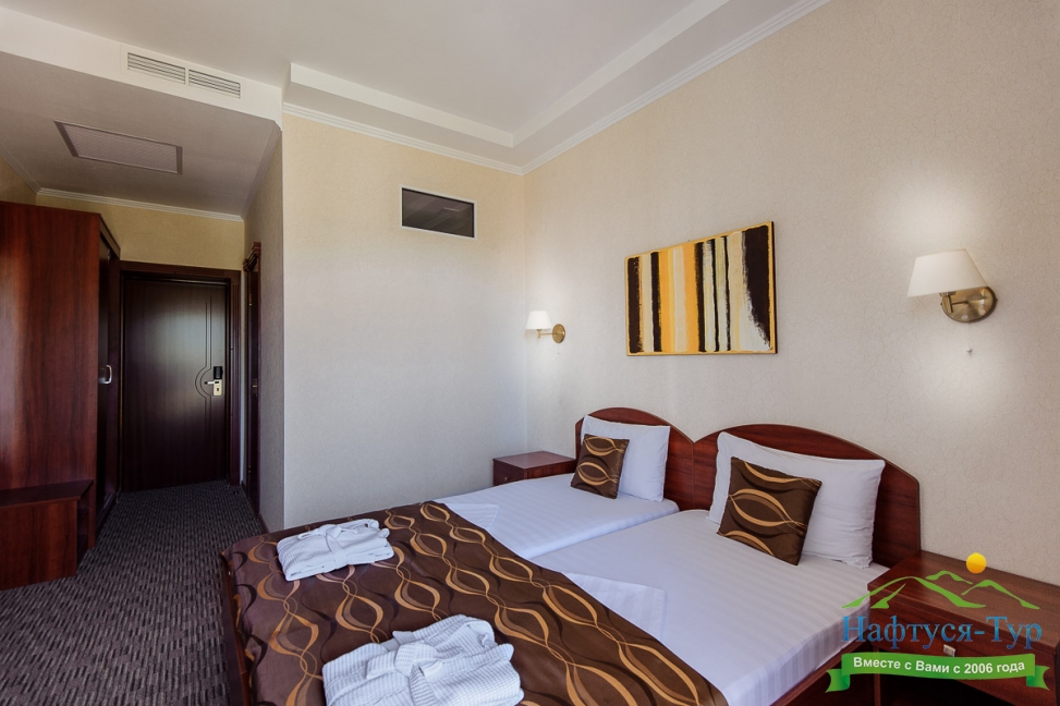 Отдыхали с друзьями в августе (3 человека). Номер у нас был Стандартный + дополнительное место. Честно скажу, было немного тесновато, но мы приехали не сидеть в номере, а отдыхать. В комнате чисто и уютно, есть всё нужное нормальному человеку, включая тапочки, халаты, в санузле вместо душа ванна, нормальный ход.