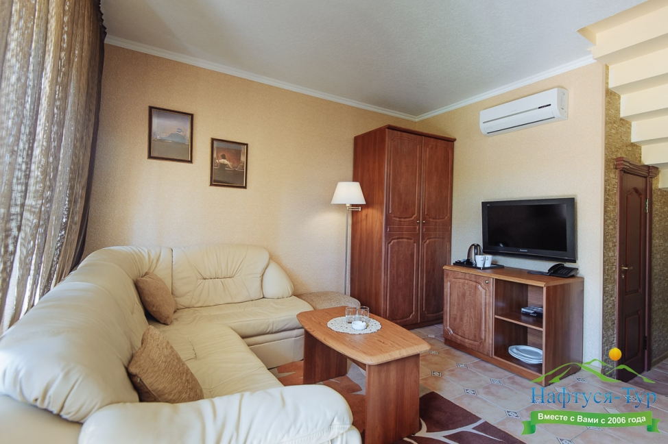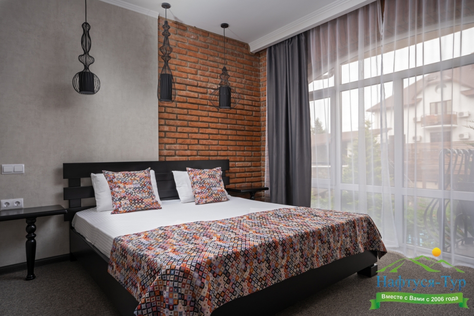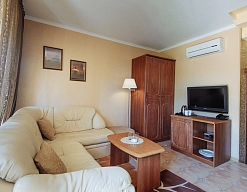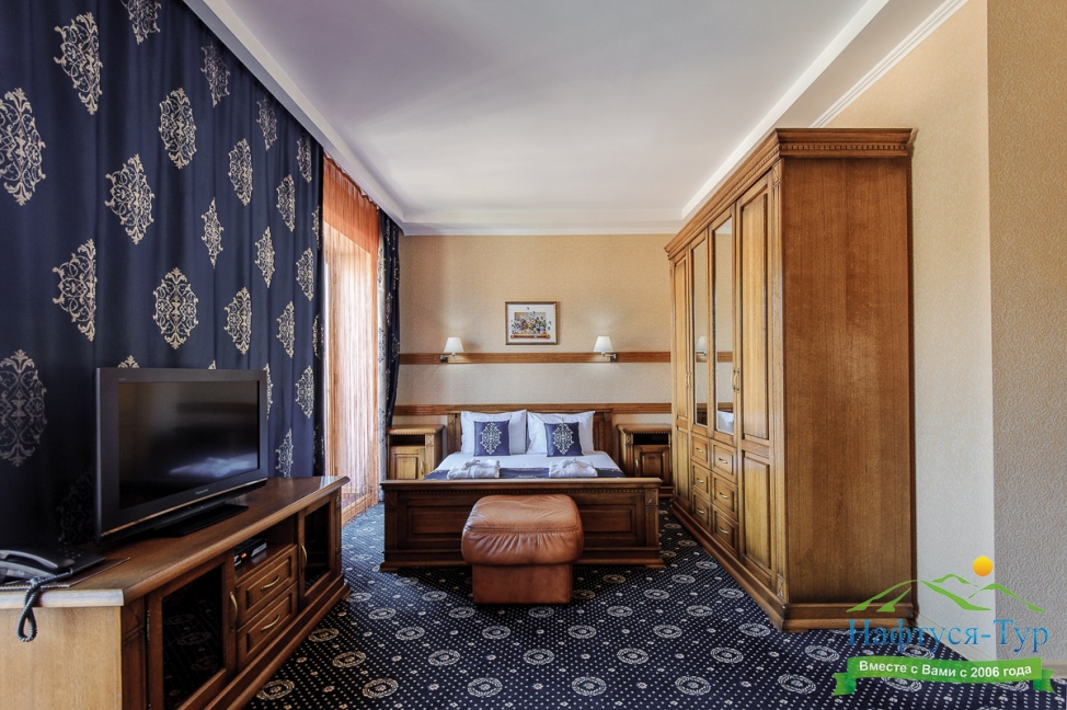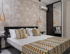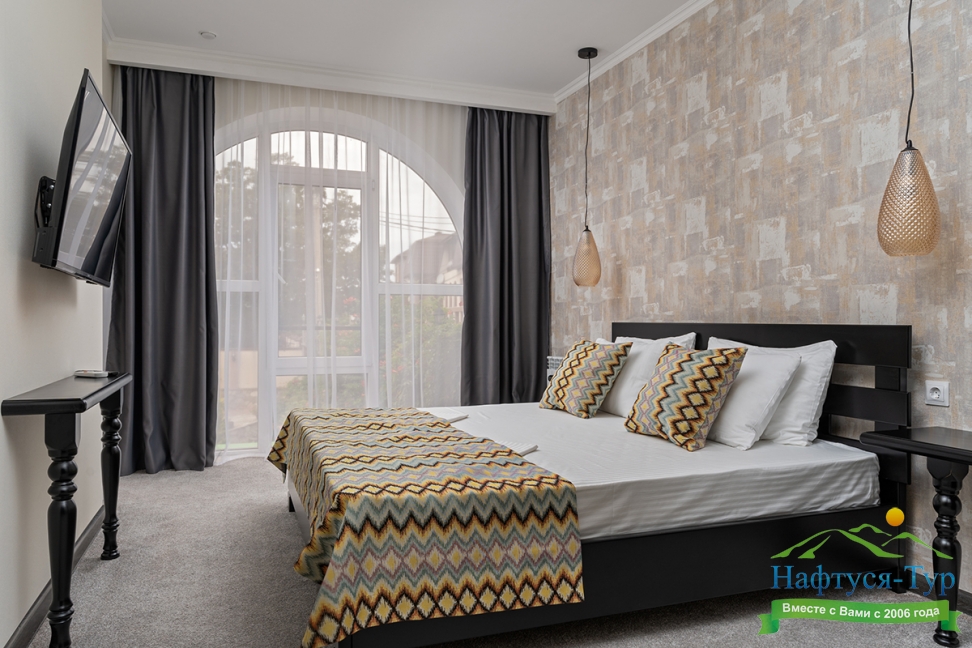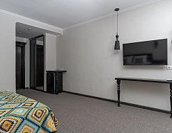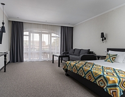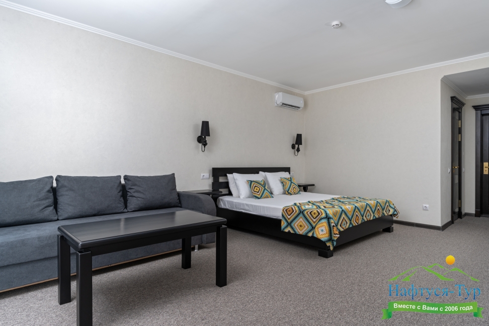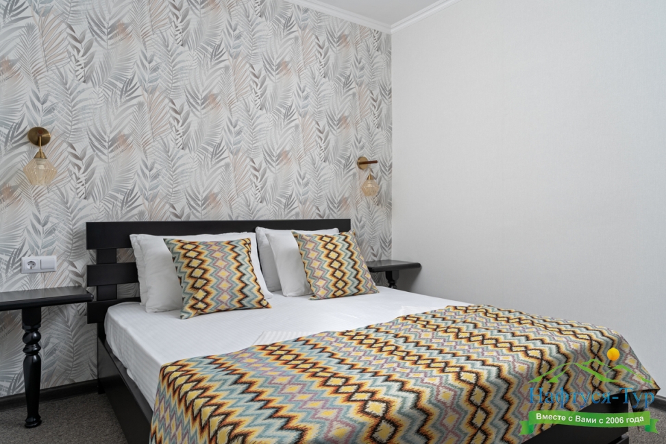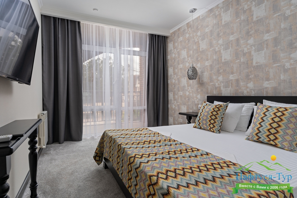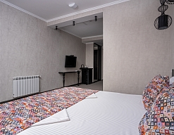 Отдыхали с друзьями в августе (3 человека). Номер у нас был Стандартный + дополнительное место. Честно скажу, было немного тесновато, но мы приехали не сидеть в номере, а отдыхать. В комнате чисто и уютно, есть всё нужное нормальному человеку, включая тапочки, халаты, в санузле вместо душа ванна, нормальный ход.