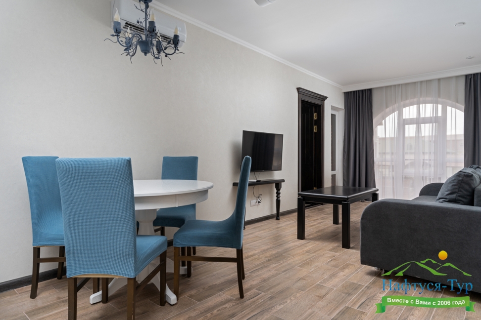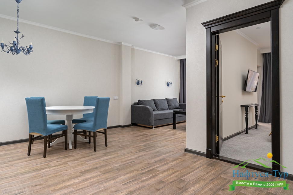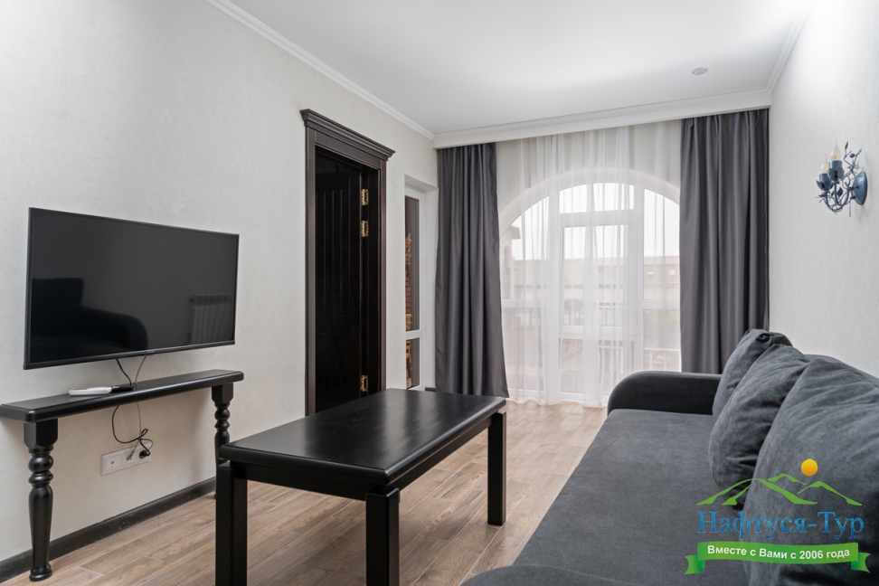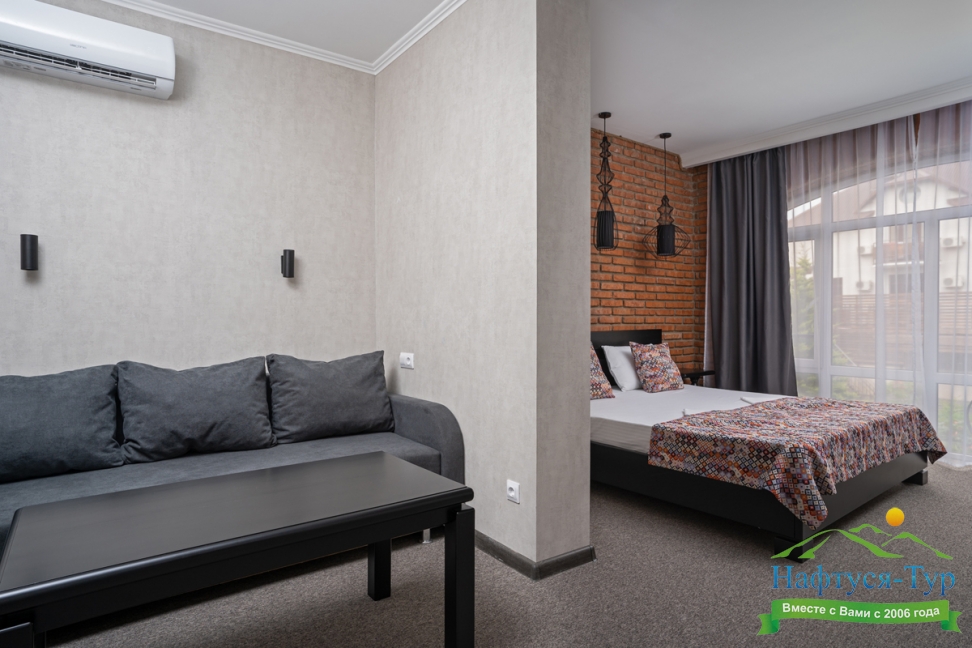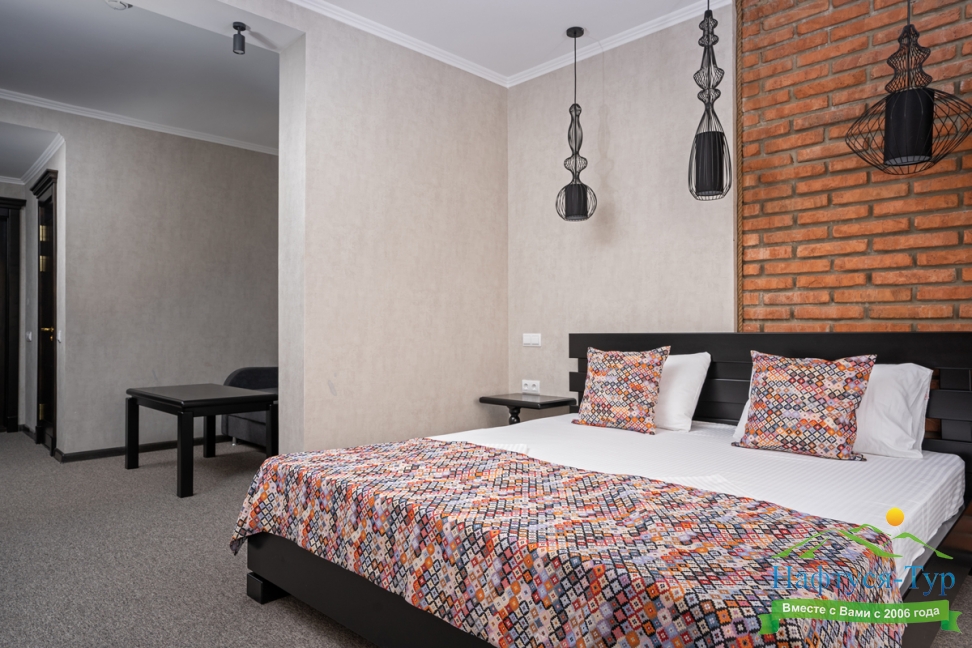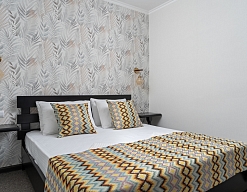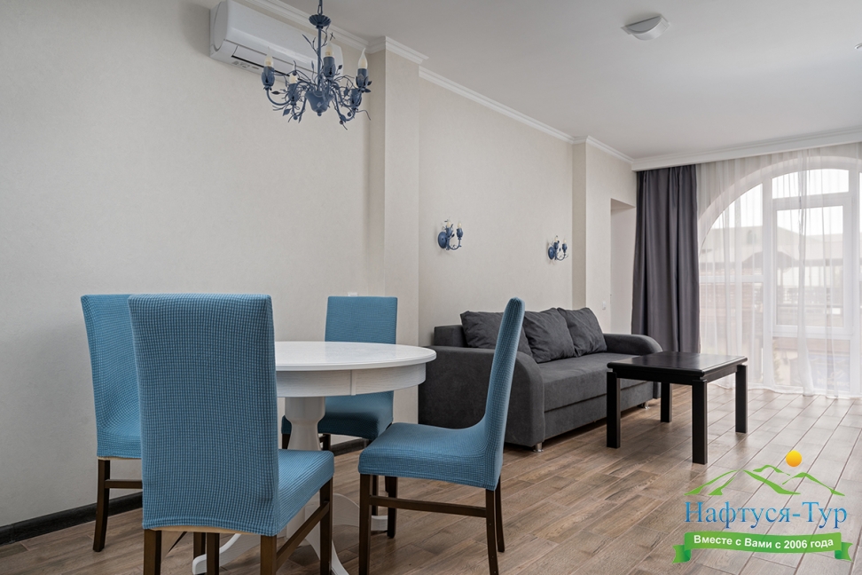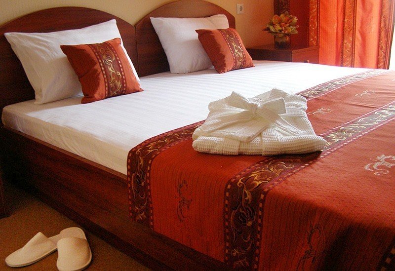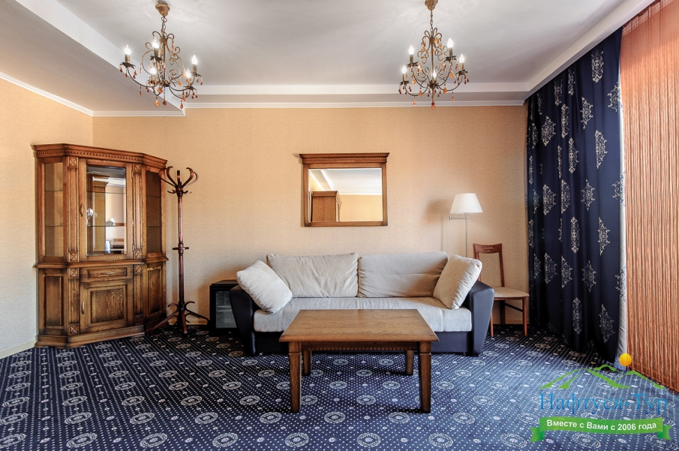 Отдыхали с друзьями в августе (3 человека). Номер у нас был Стандартный + дополнительное место. Честно скажу, было немного тесновато, но мы приехали не сидеть в номере, а отдыхать. В комнате чисто и уютно, есть всё нужное нормальному человеку, включая тапочки, халаты, в санузле вместо душа ванна, нормальный ход.