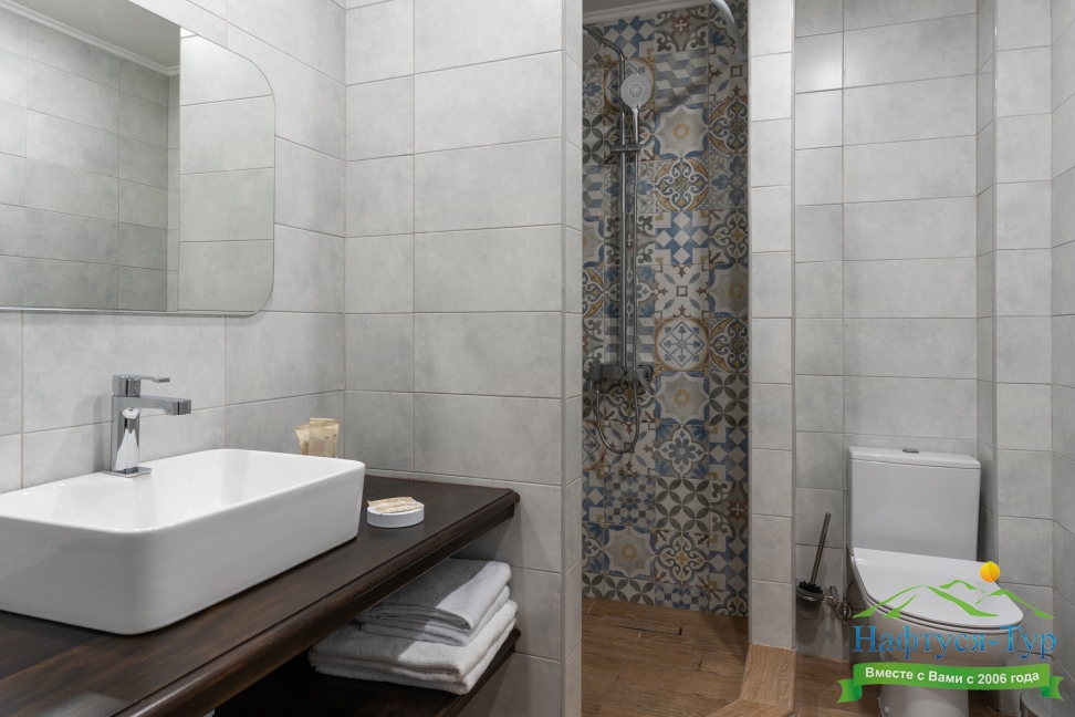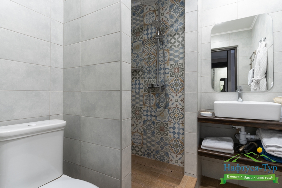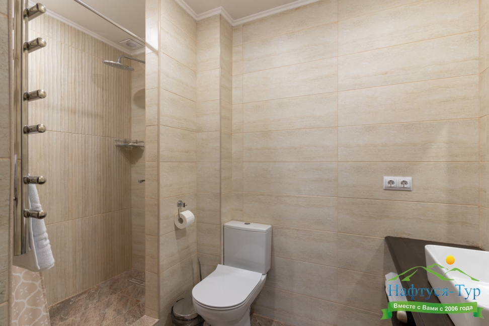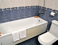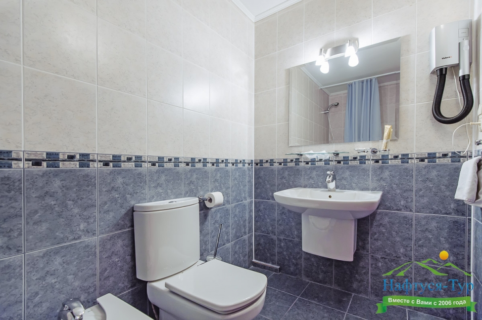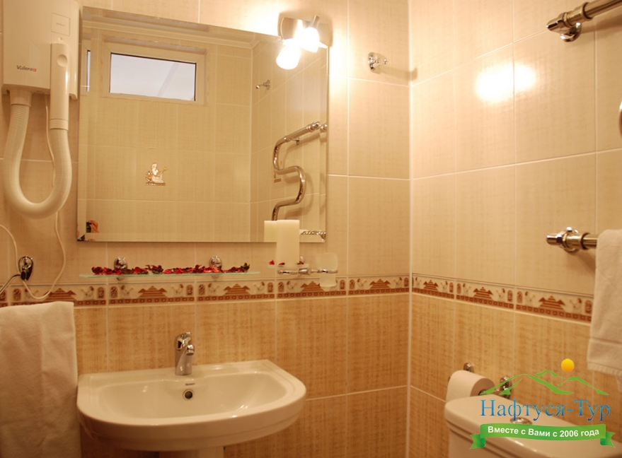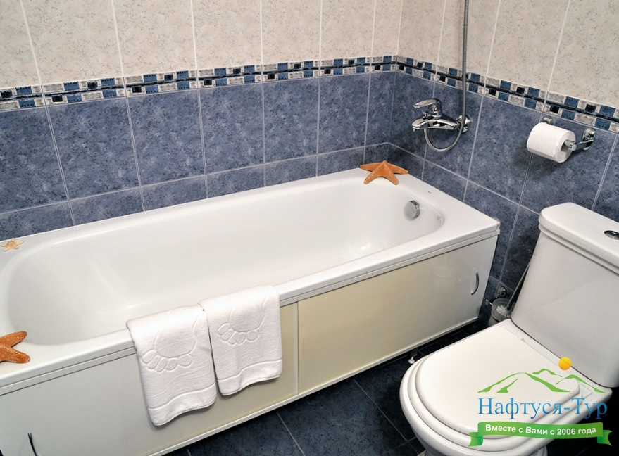 2 санузла, с ванной, тапочки, туалетные принадлежности, фен, халат