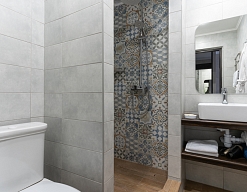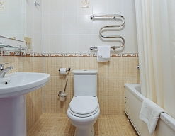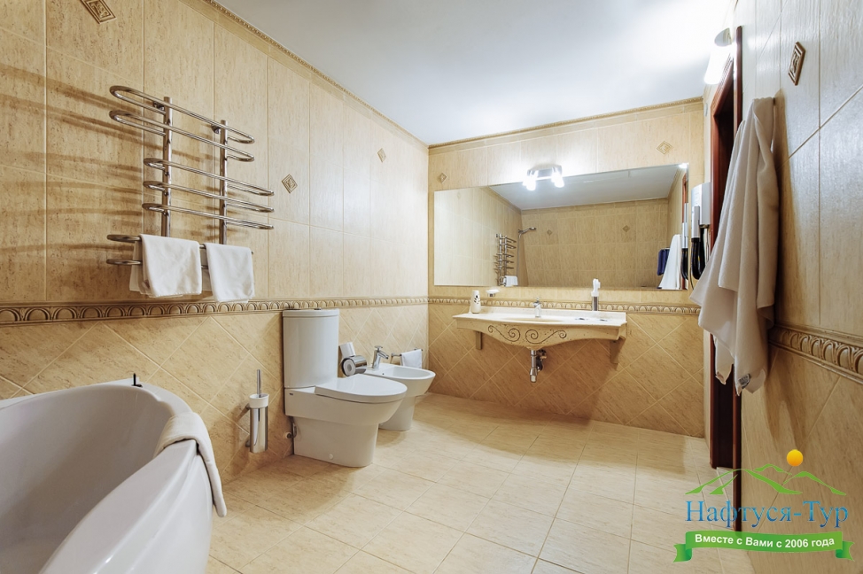 биде, с ванной, тапочки, туалетные принадлежности, фен, халат