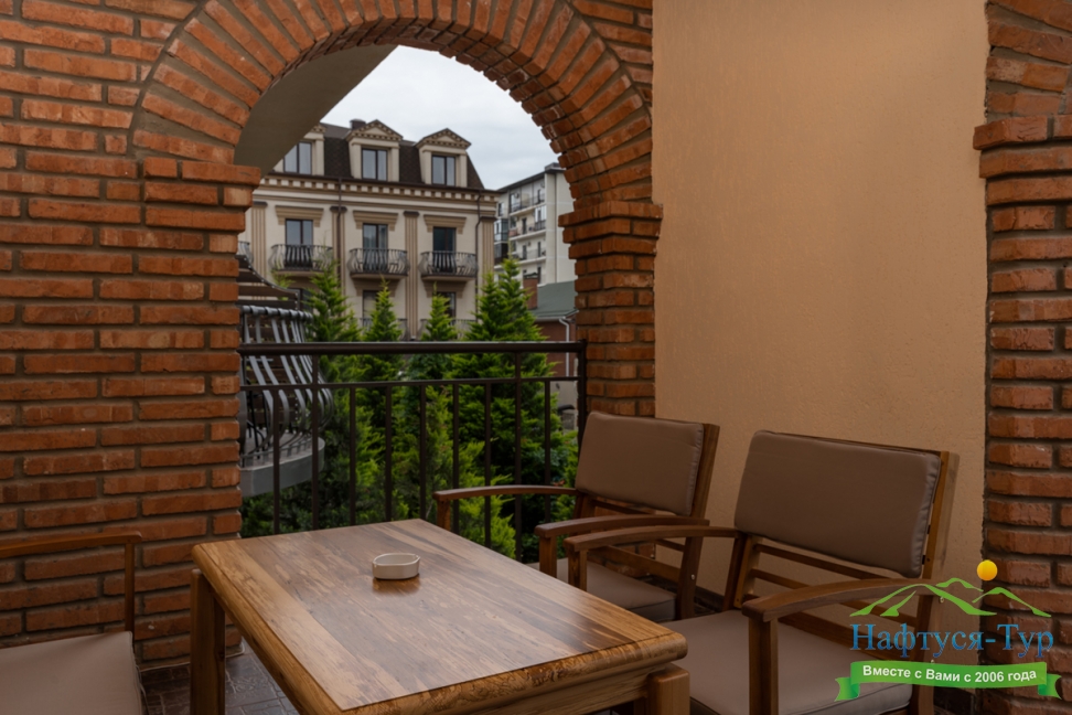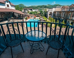 Отдыхала в отеле с молодым человеком. Очень хорошее место, новые номера, красивый интерьер, отличная территория. Атмосфера от самого входа сюда очень приятная. Выглядит всё дорого и солидно. Отель удобно расположен, в самом центре Кабардинки.