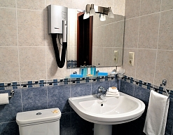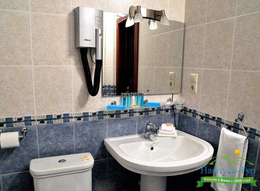 с ванной, туалетные принадлежности, фен, халат