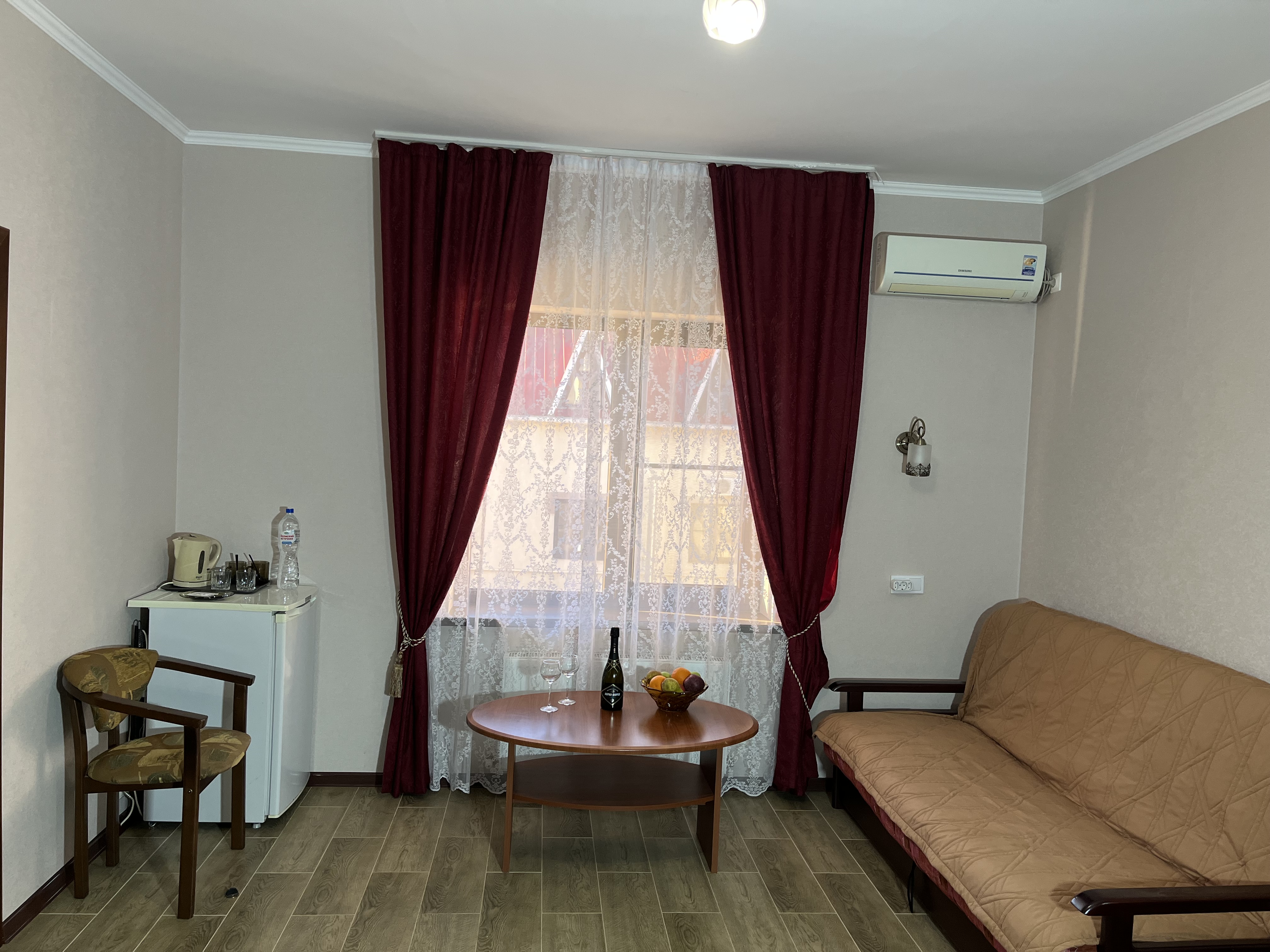 сейф, сплит-система, телевизор ЖК, холодильник, чайный набор посуды, электрочайник