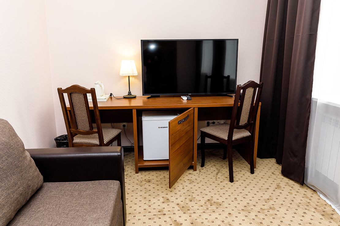 мини-холодильник, сплит-система, телевизор, чайный набор посуды, электрочайник