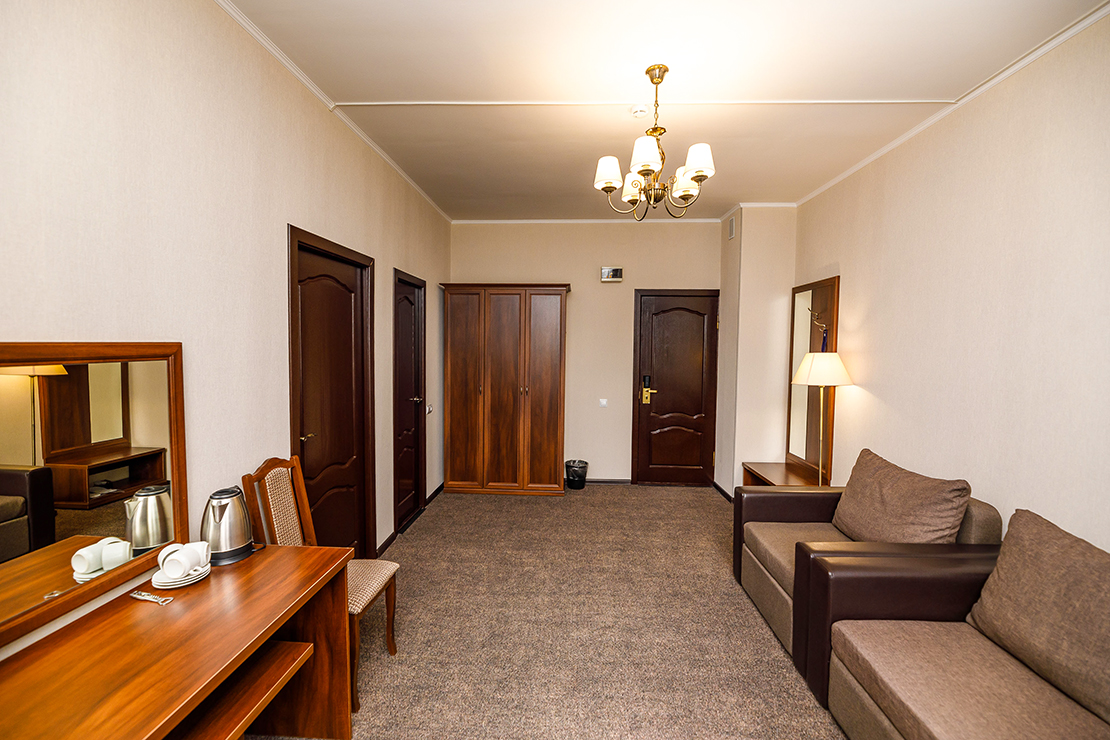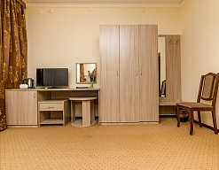 вешалка, диван раскладной, зеркало, кресло-кровать, кровати односпальные /одна двуспальная кровать, прикроватные тумбочки, столик журнальный, столик туалетный, стулья, шкаф
