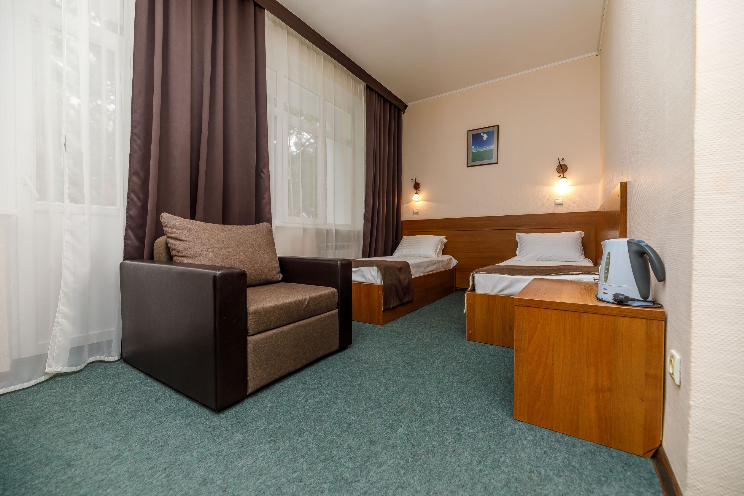 Пансионат находится в центре города, в шаговой доступности ко всем объектам городской инфраструктуры: