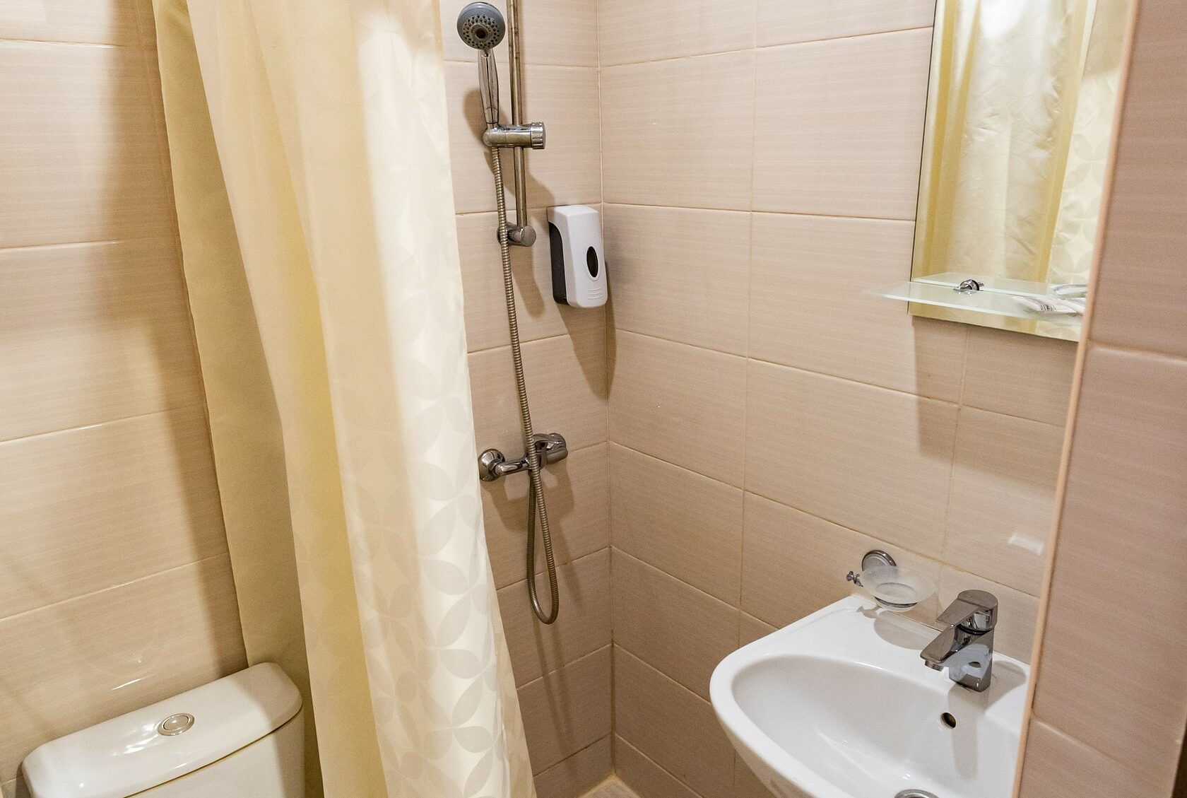 с душем, туалетные принадлежности, фен