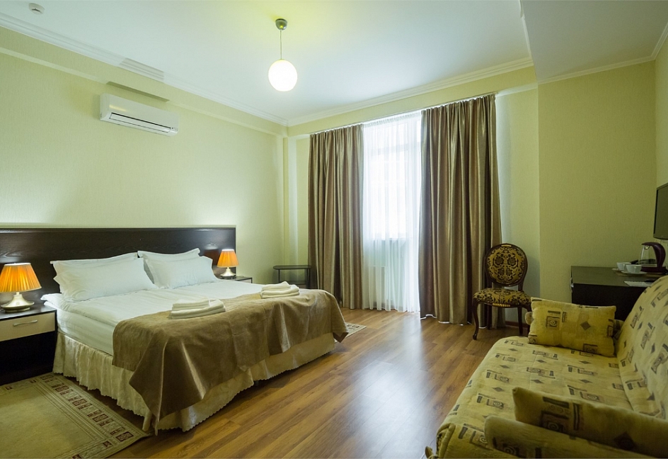 Отдыхали в отеле «Green Hosta» с 7 по 17 июня. Приехали в 7 утра. Заселение в номер в 14:00. Сил ждать не было. Хотели спать. Дружелюбная девушка на ресепшене предложила доплатить 800₽ и заселить сразу.