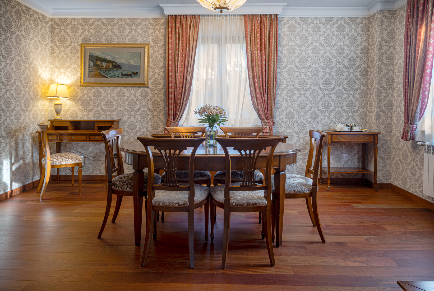 вешалка, гардеробная, зеркало, кровати односпальные /одна двуспальная кровать, стол, стулья, тумба багажная, шкаф