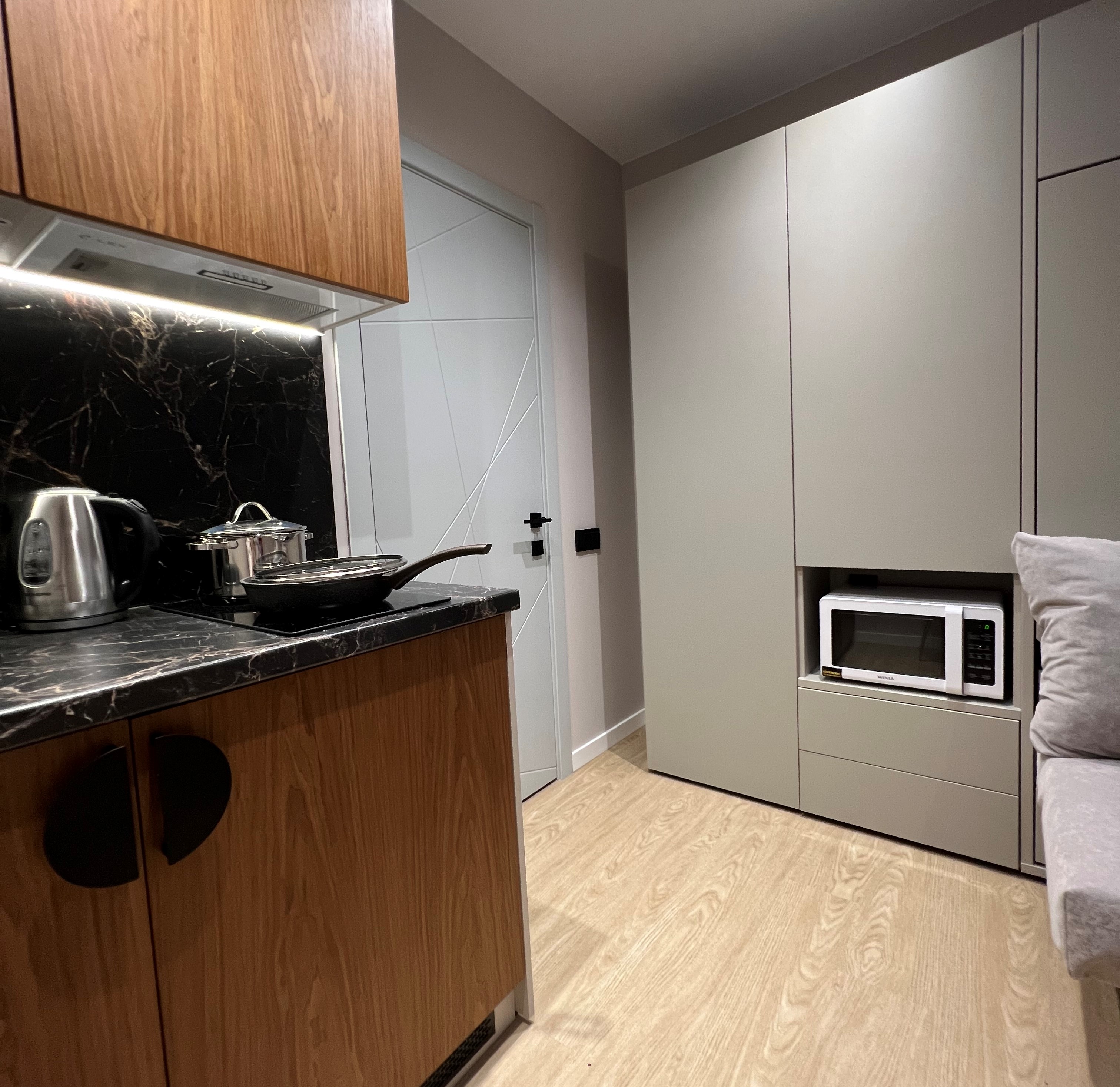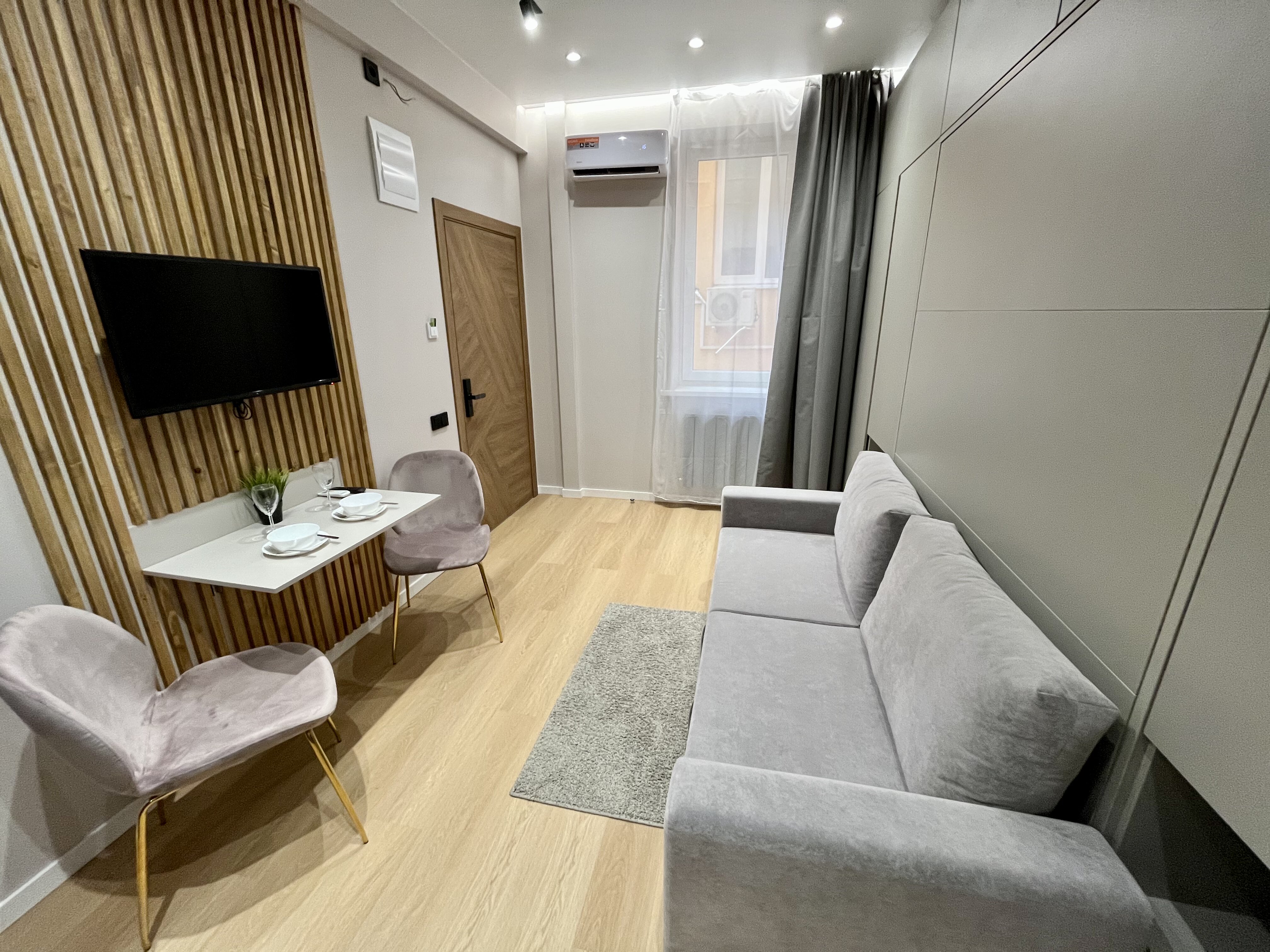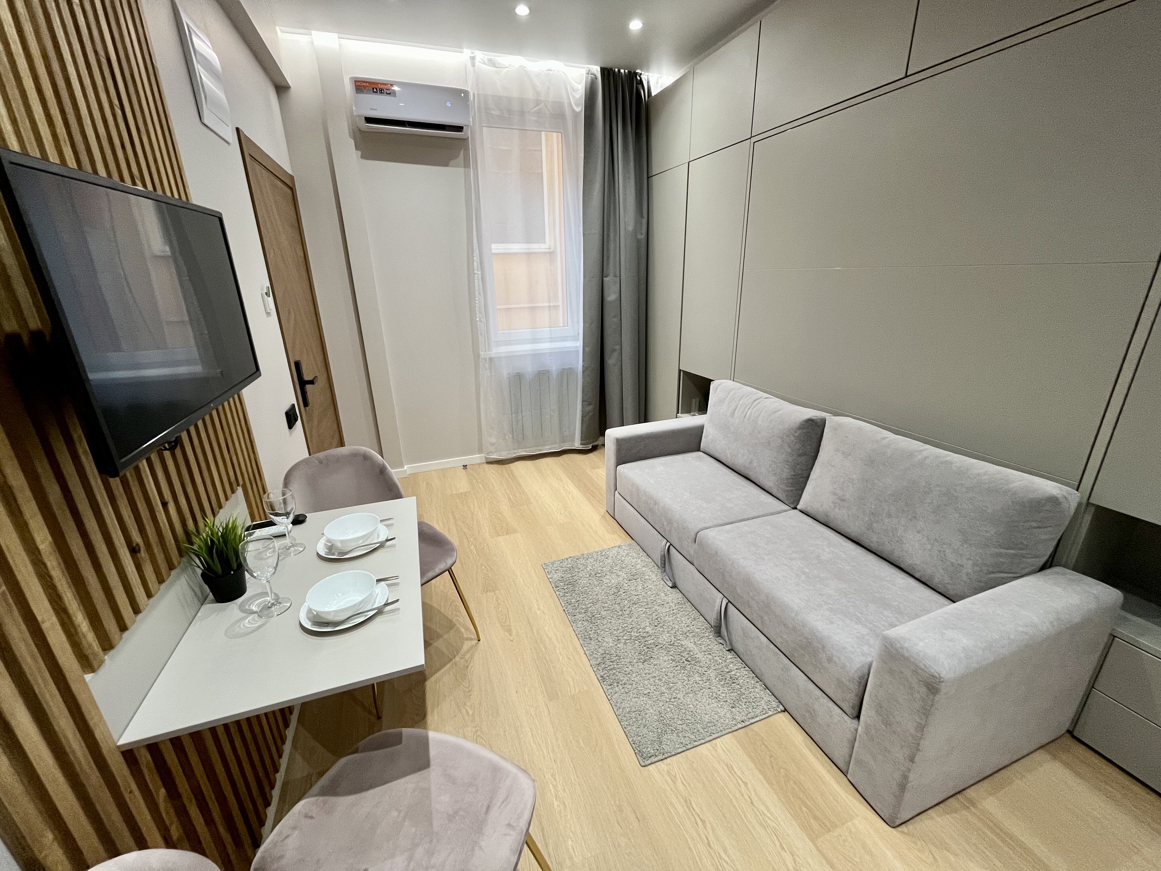 кондиционер, микроволновая печь, мини-холодильник, набор посуды, телевизор ЖК