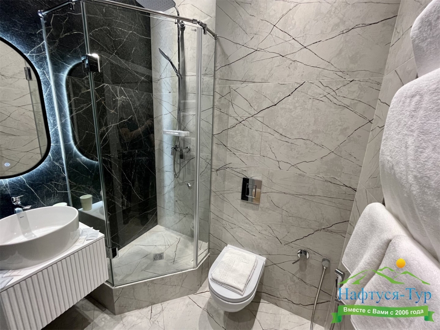 с душем, туалетные принадлежности, фен