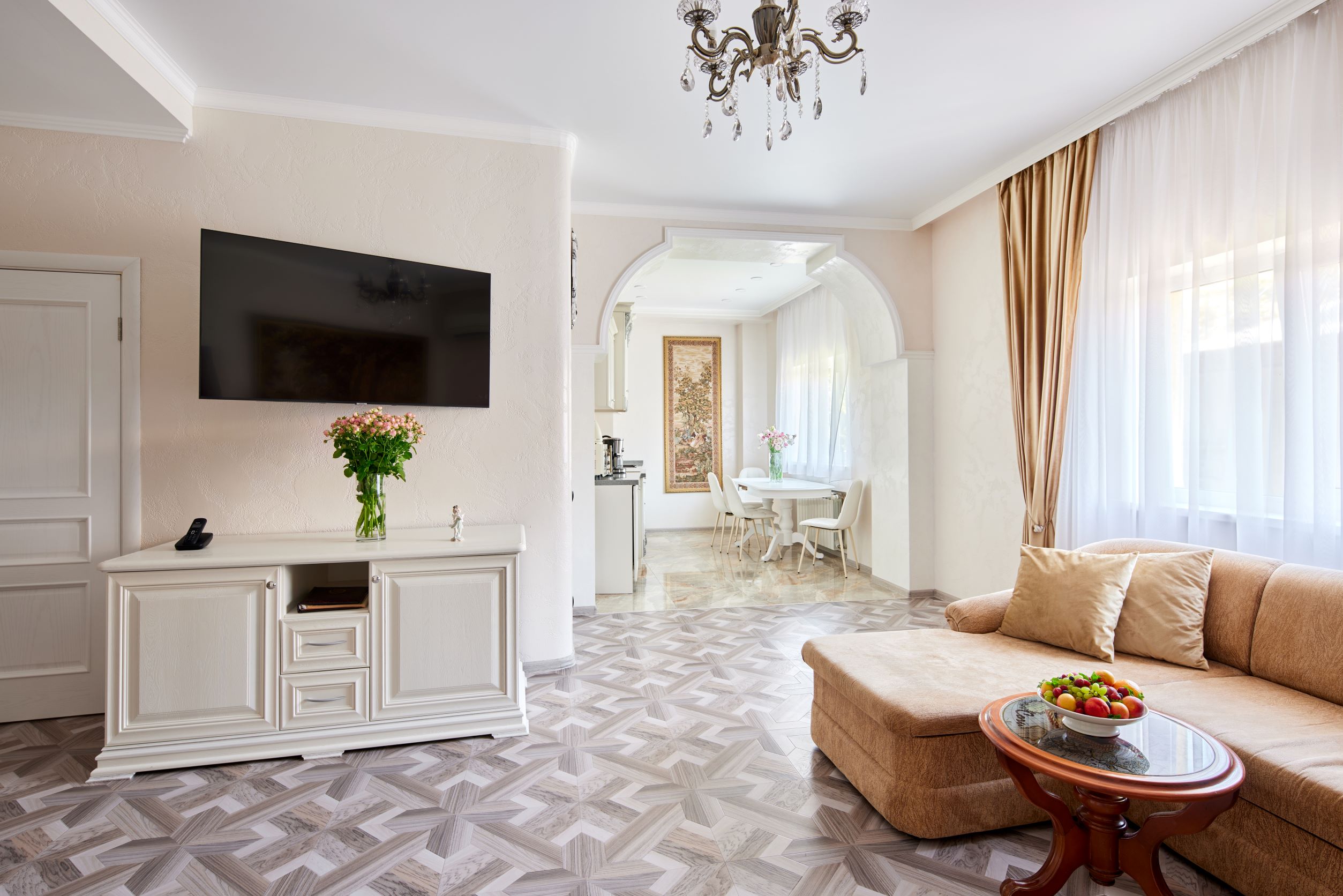 кондиционер, пляжные полотенца, сейф, телевизор, холодильник, чайный набор посуды