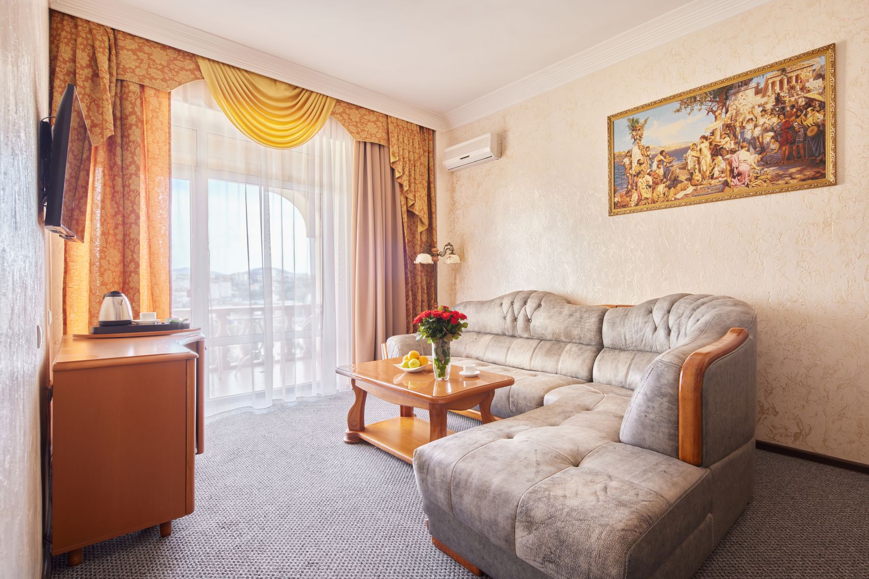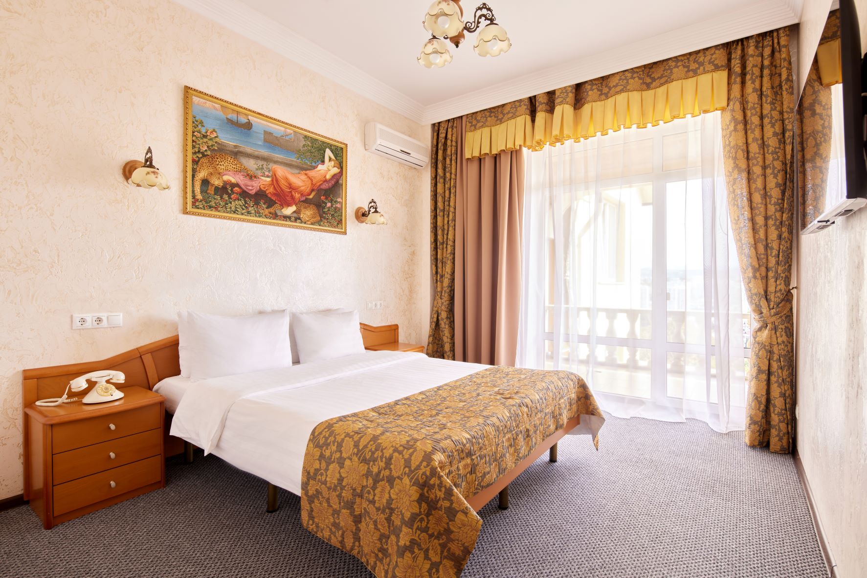кондиционер, мини-холодильник, сейф, телевизор, телефон, чайник