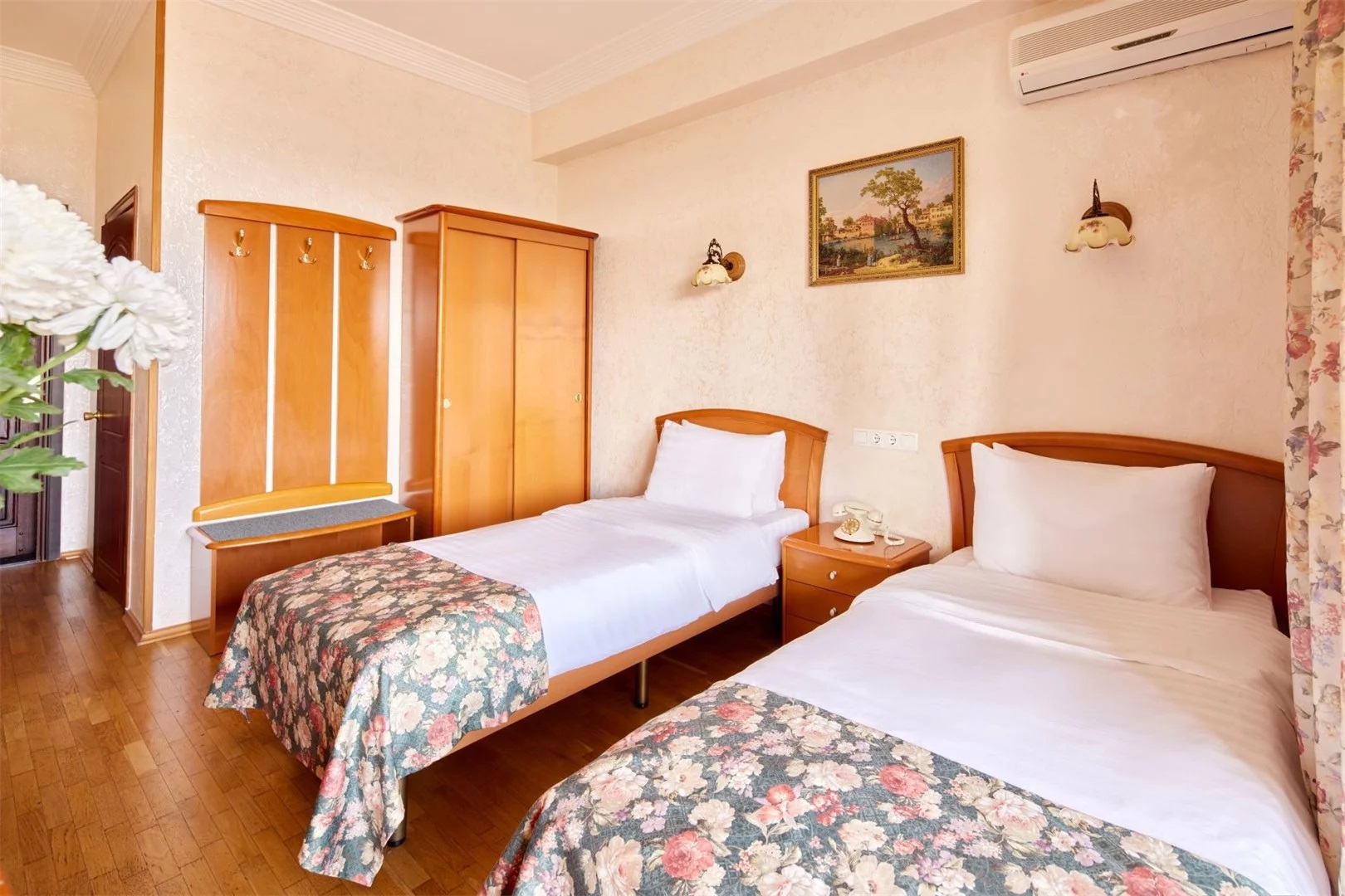 кровати односпальные /одна двуспальная кровать, прикроватные тумбочки, стол, стулья, тумба, шкаф