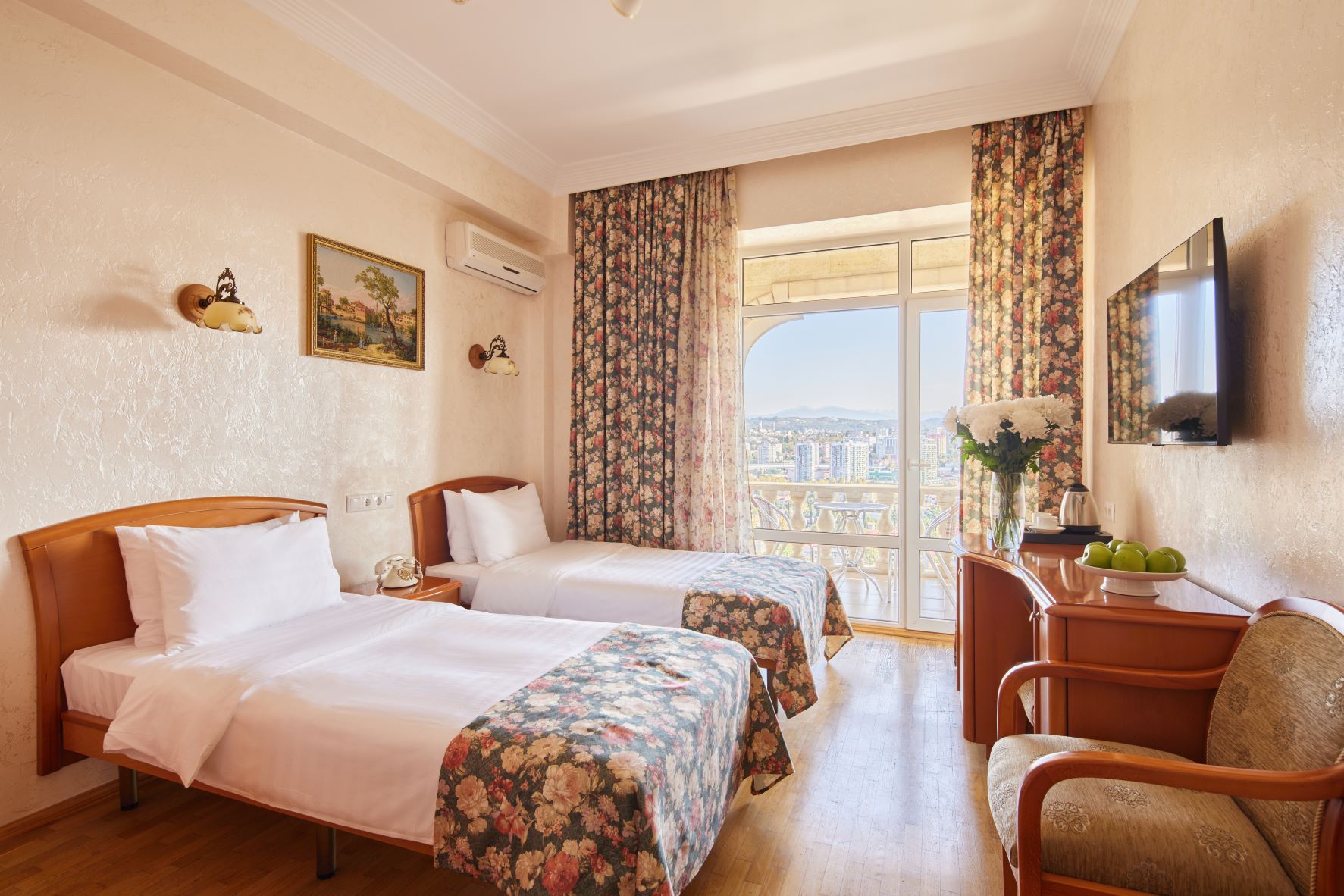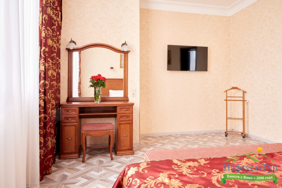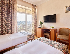 Очень понравилось расположение гостиницы – практически в центре города, среди кипарисов. Рядом остановка автобуса. Красивый вид на город из окна, особенно ночью. Номер был неплохой, но видно, что кое-что неплохо было бы обновить.