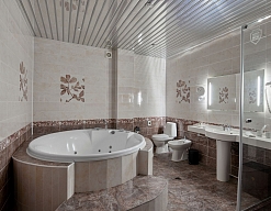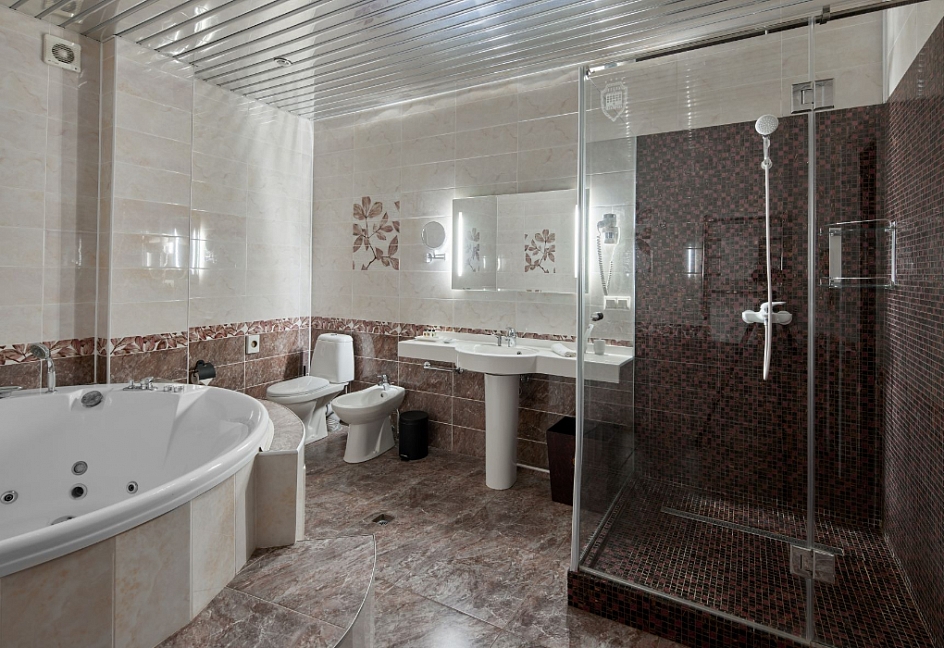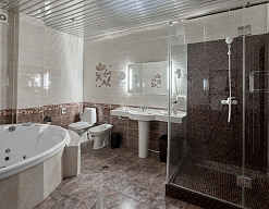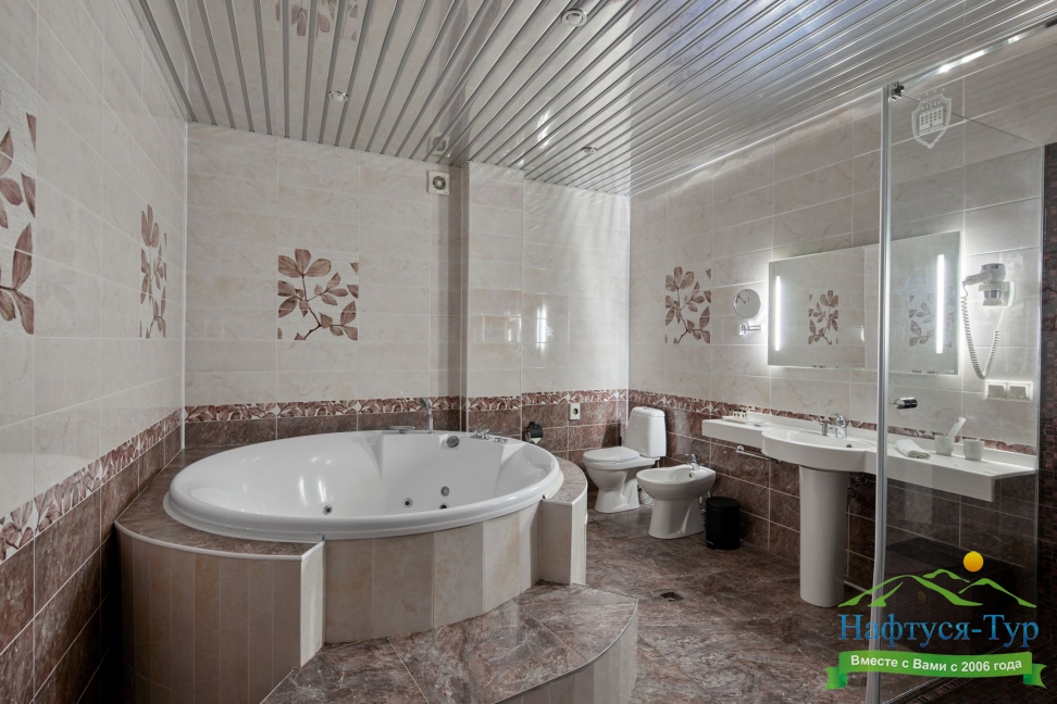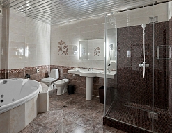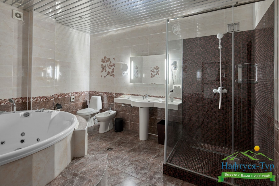 с джакузи, с душевой кабиной, тапочки, туалетные принадлежности, фен, халат