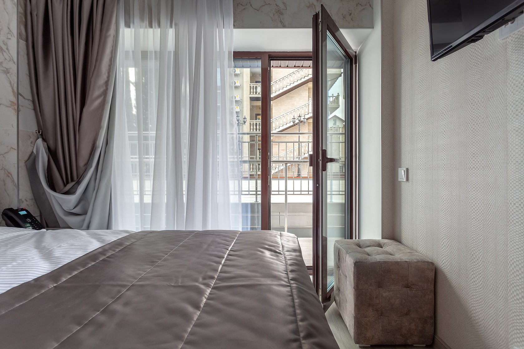 кондиционер, мини-холодильник, набор посуды, сейф, телевизор, телефон, электрочайник