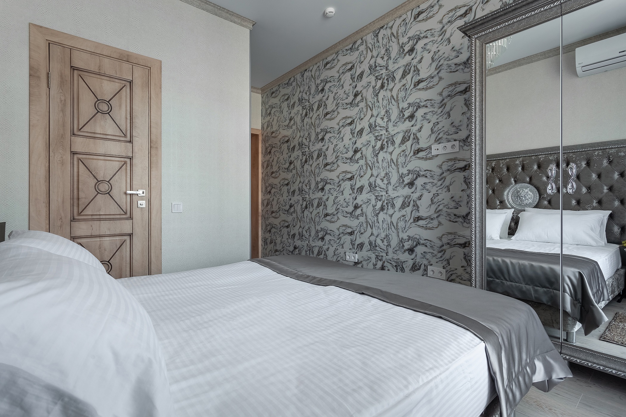 вешалка, кровать двуспальная, прикроватные тумбочки, шкаф
