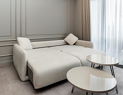 диван, кровать двуспальная, прикроватные тумбочки, стол, стулья, шкаф