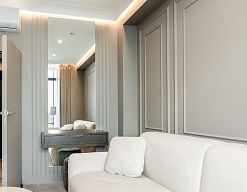 зеркало, кресло, кровати односпальные /одна двуспальная кровать, прикроватные тумбочки, столик журнальный, шкаф