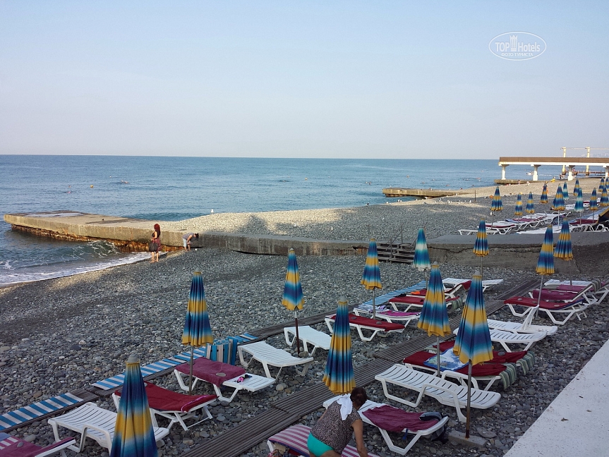Расположение: Первая линия у моря (50 м до пляжа от корпуса 2), 28 км до центра Сочи, 5 км до аэропорта Адлер