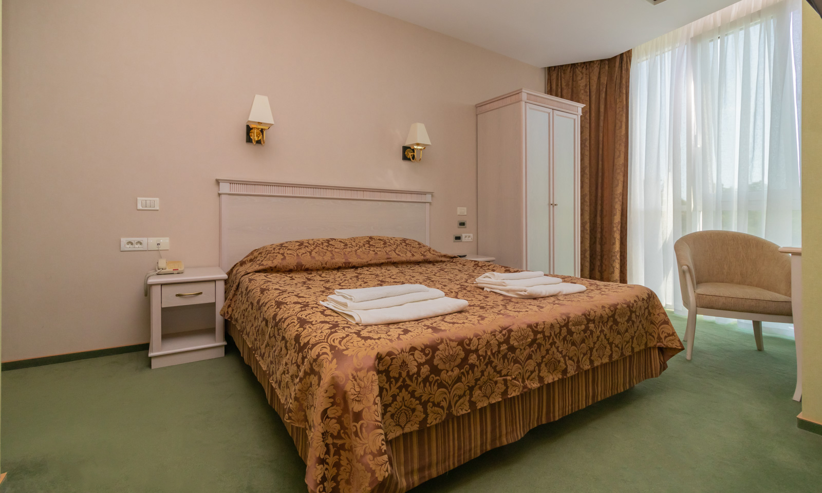 Комфортабельное размещение: "Изумруд" предоставляет уютные номера с современными удобствами, создавая атмосферу релаксации и уюта.