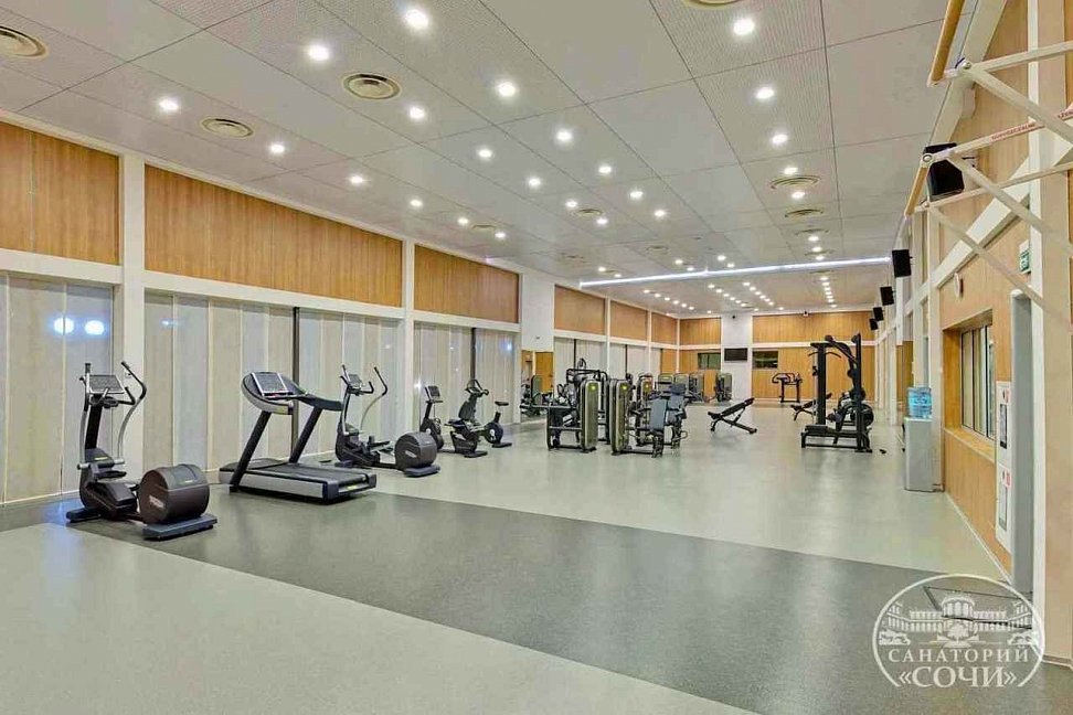 Санаторий также оснащен современным тренажерным залом, где можно заниматься фитнесом и поддерживать форму во время отдыха. На территории санатория имеются спортивные площадки для проведения игр в баскетбол, волейбол, теннис и другие виды спорта.