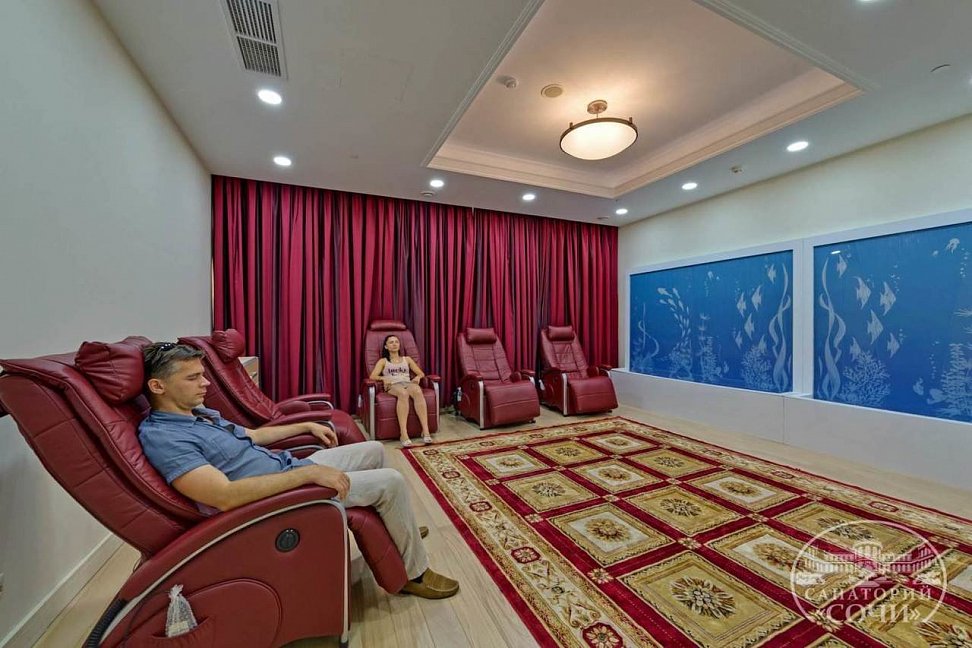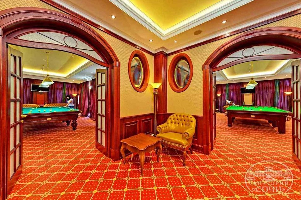 В санатории есть кинозал, где гости могут посмотреть кинофильмы, конференц-зал, где можно проводить деловые встречи и конференции, а также библиотека, где можно насладиться чтением.