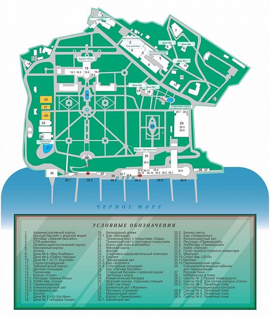 Территория санатория Управления делами Президента Российской Федерации в Сочи предоставляет гостям все необходимые условия для отличного отдыха и проведения процедур лечения.