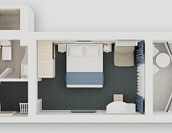 зеркало, кресло-кровать, кровати односпальные, прикроватные тумбочки, стол, стул, тумба багажная, шкаф-купе