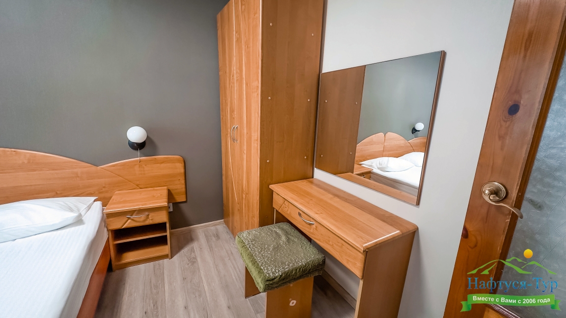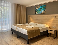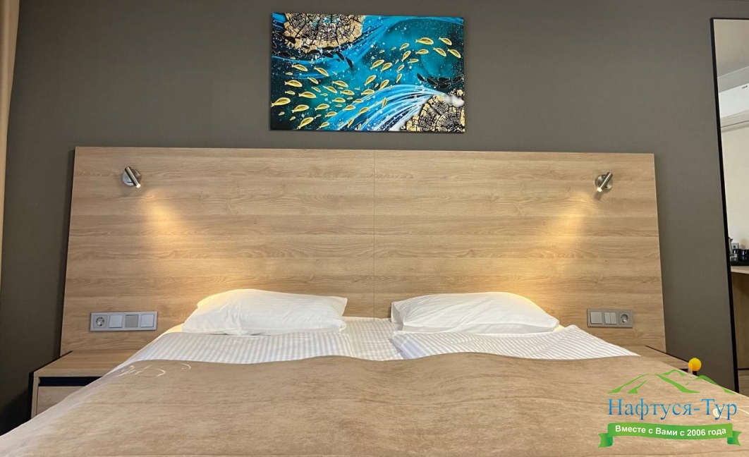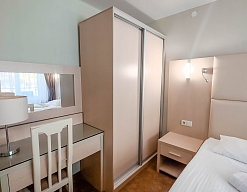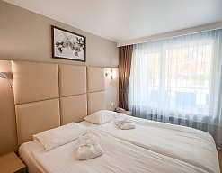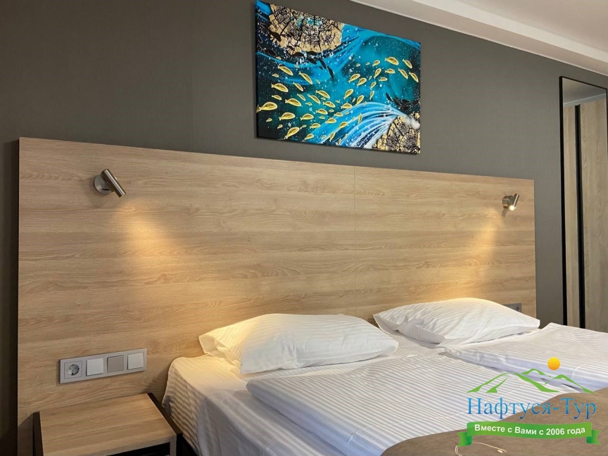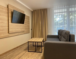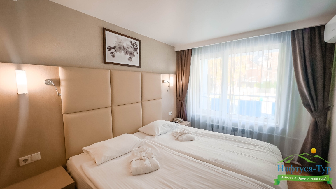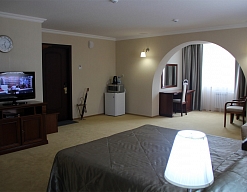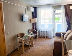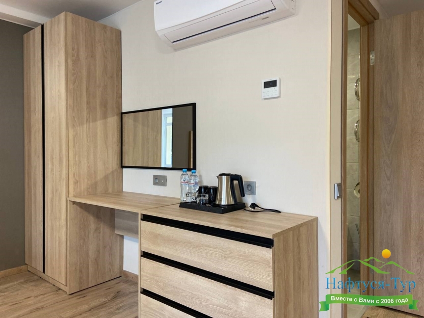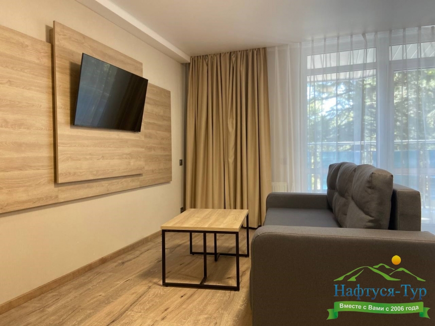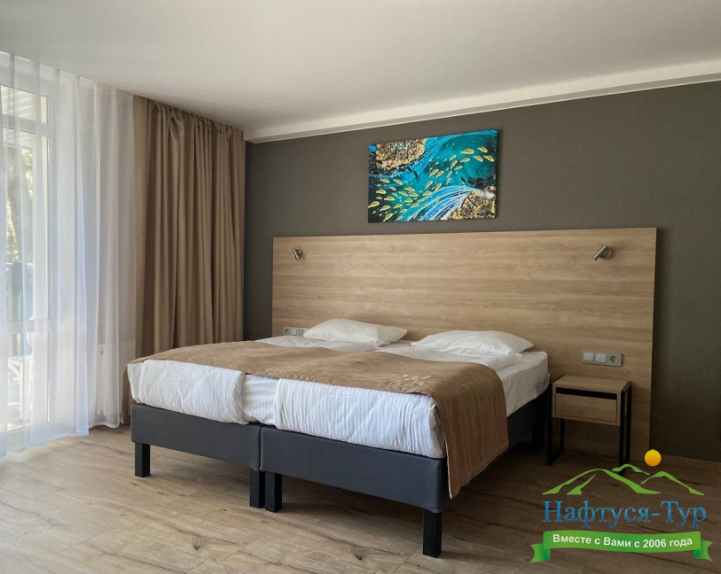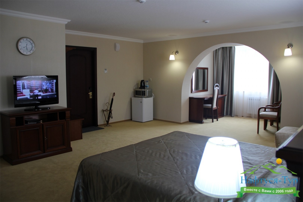 Отдыхали в мае 2016 года. Впечатления не самые положительные. В номере из описанного спектра принадлежностей ,некоторые отсутствуют. В спальне: на тумбочках пыль, на дверях жирные пятна. Чехлы на креслах и диване в пятнах.
