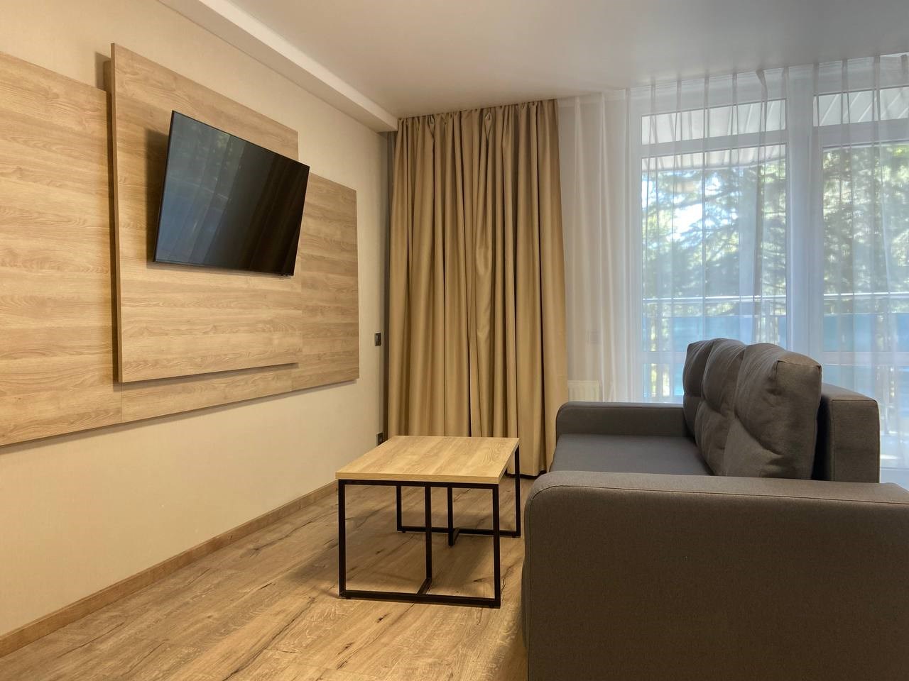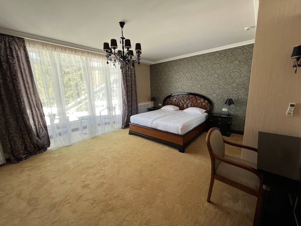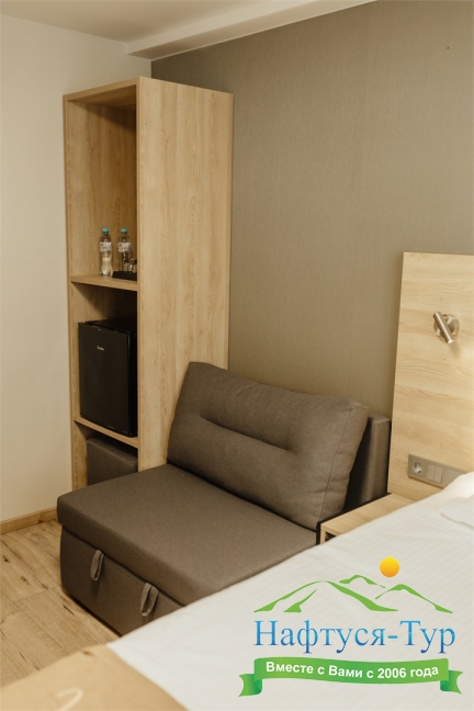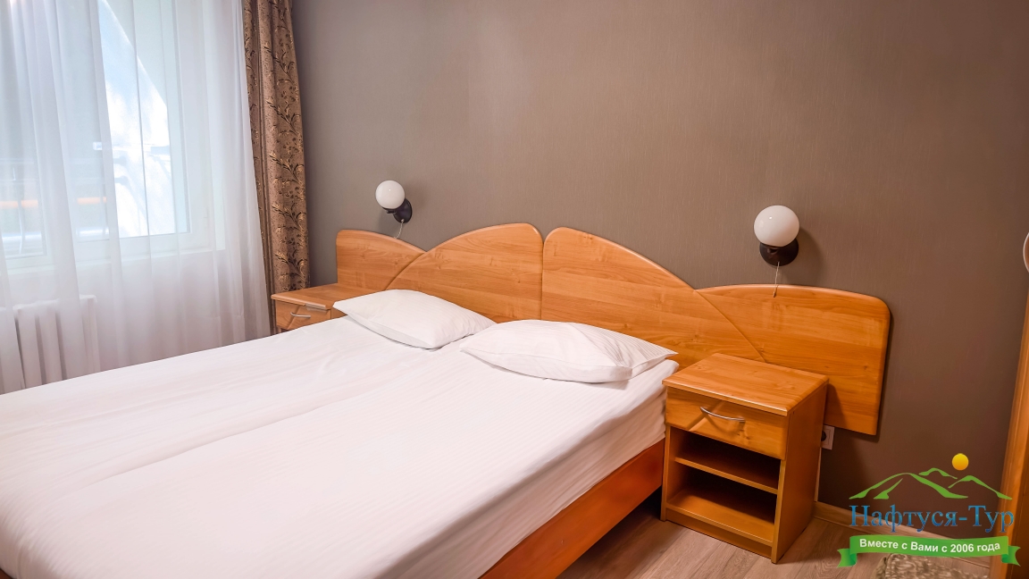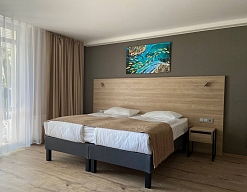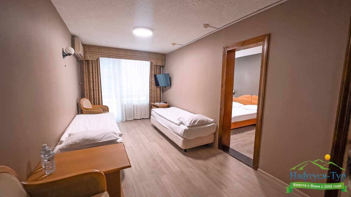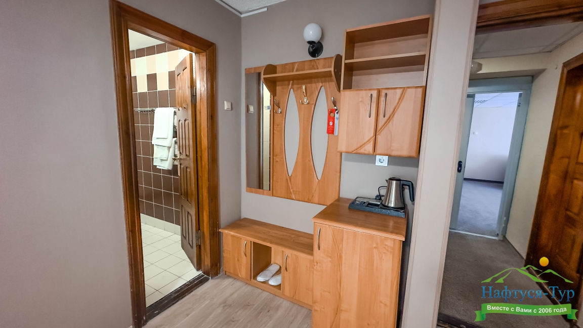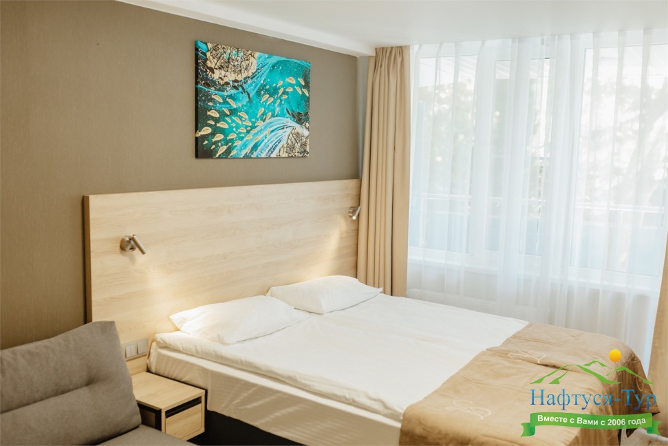 Отдыхали в мае 2016 года. Впечатления не самые положительные. В номере из описанного спектра принадлежностей ,некоторые отсутствуют. В спальне: на тумбочках пыль, на дверях жирные пятна. Чехлы на креслах и диване в пятнах.