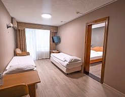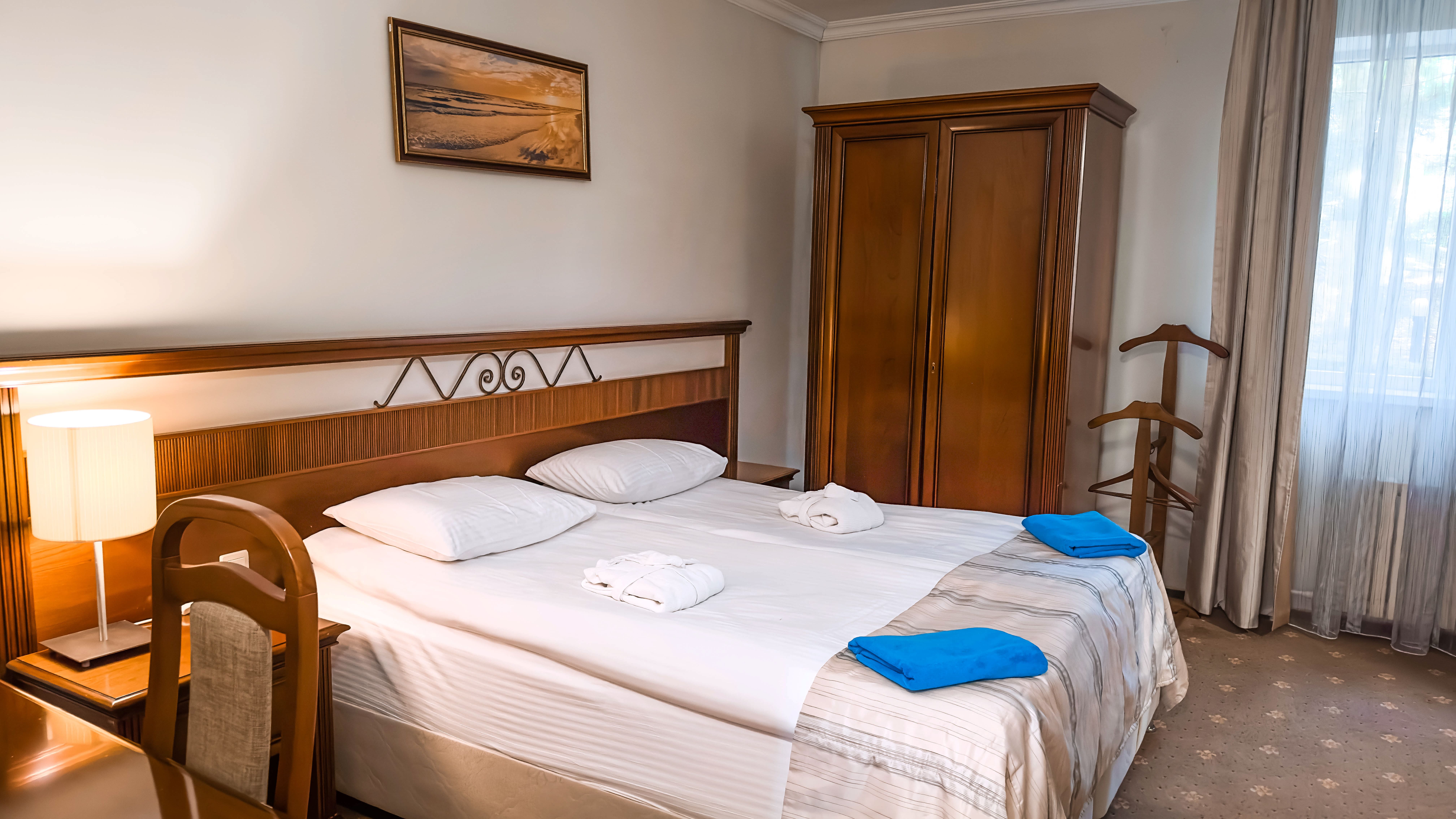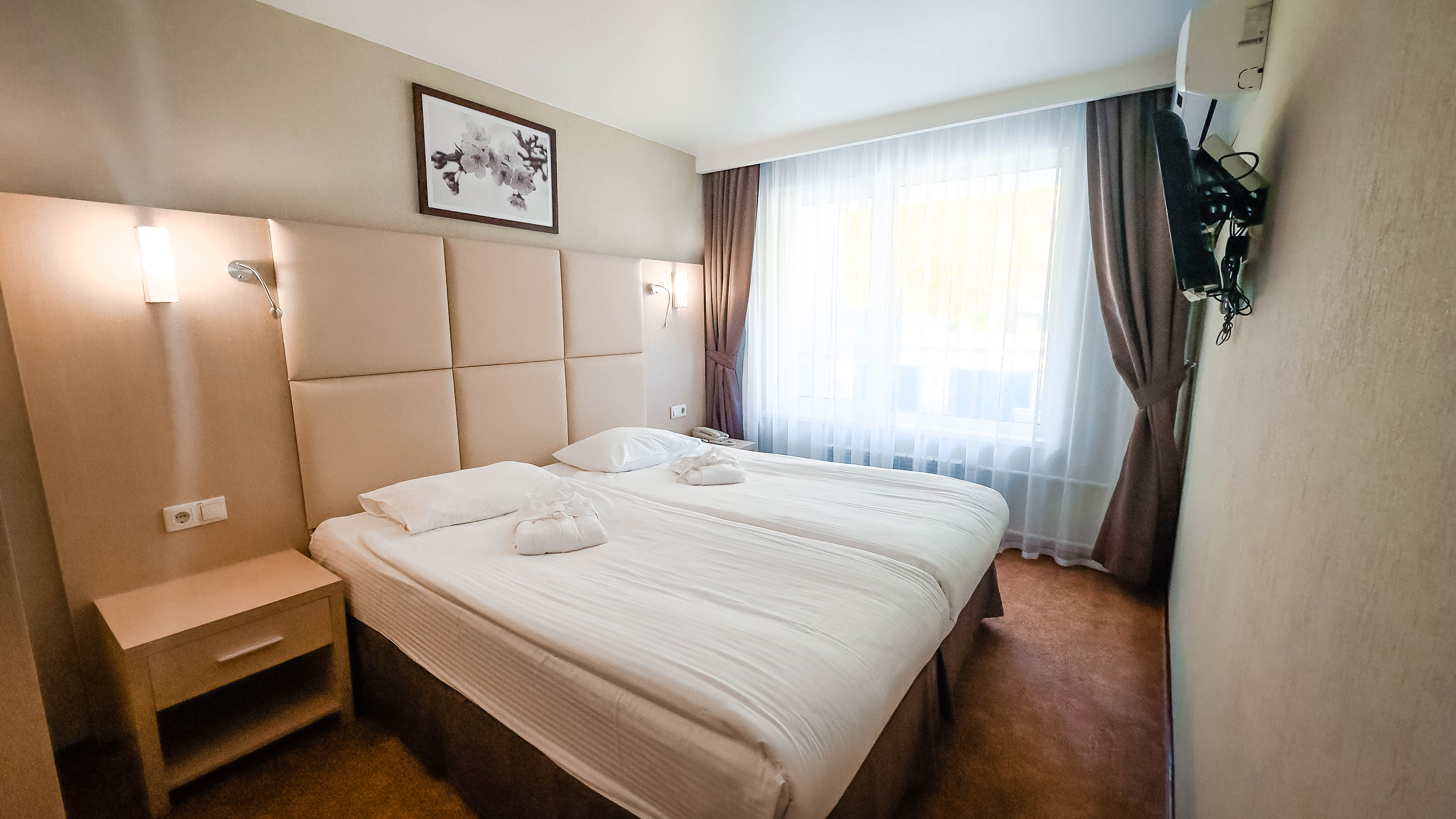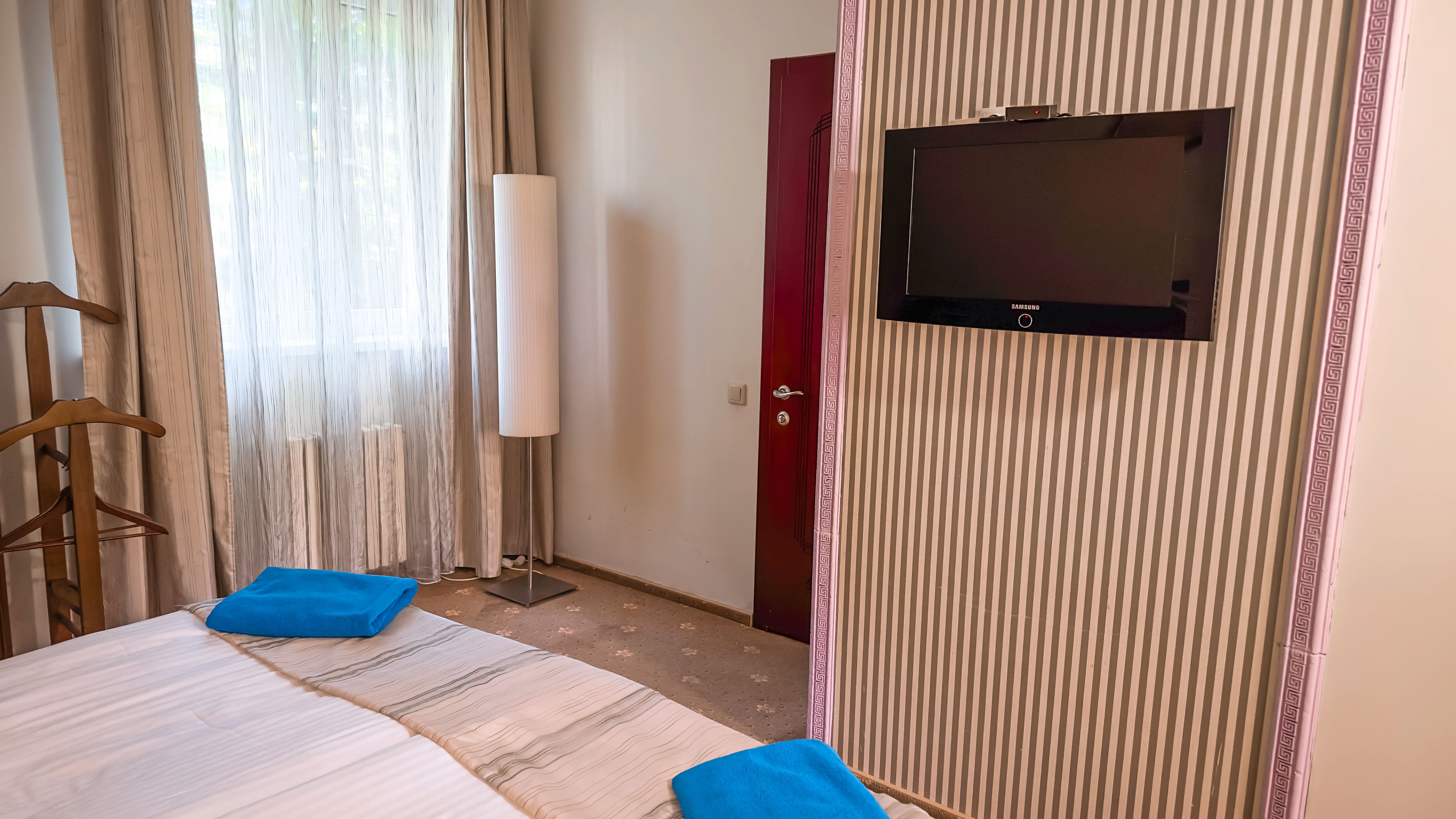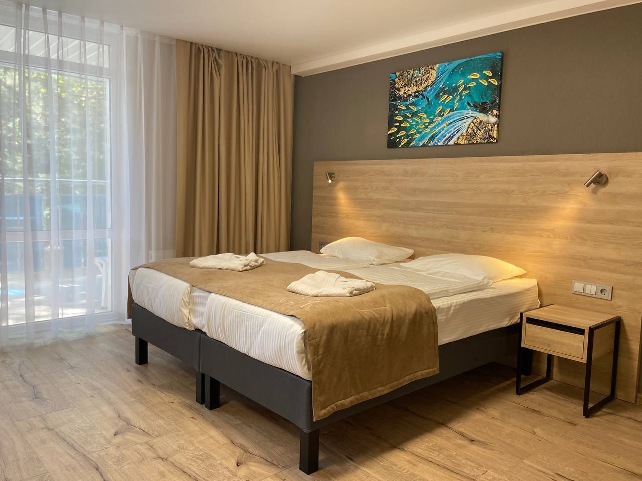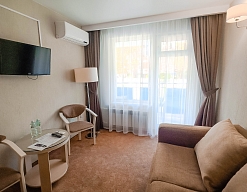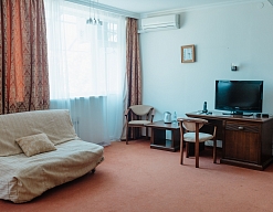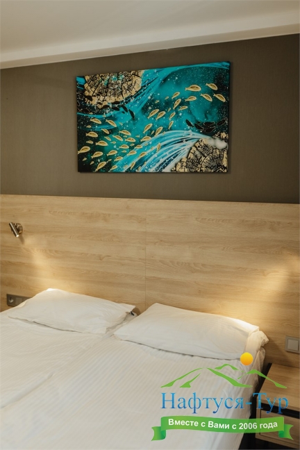 Отдыхали в мае 2016 года. Впечатления не самые положительные. В номере из описанного спектра принадлежностей ,некоторые отсутствуют. В спальне: на тумбочках пыль, на дверях жирные пятна. Чехлы на креслах и диване в пятнах.