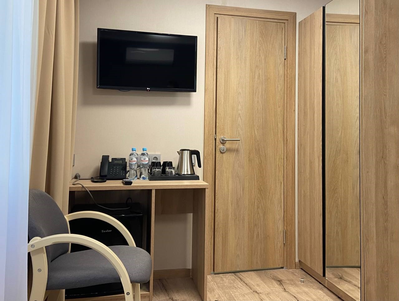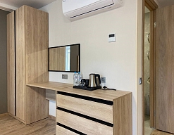 кондиционер, мини-холодильник, сейф, телевизор, телефон, чайный набор посуды, электрочайник