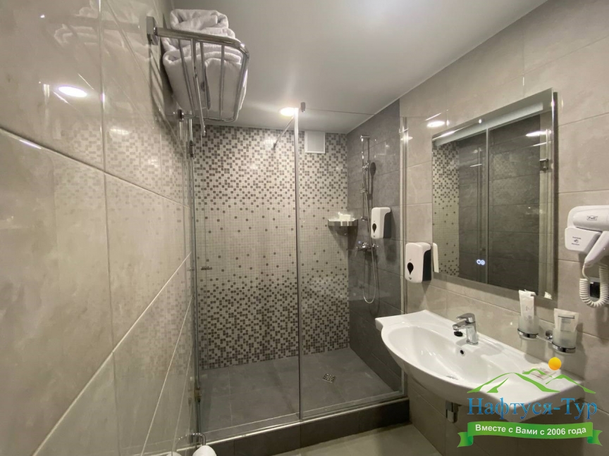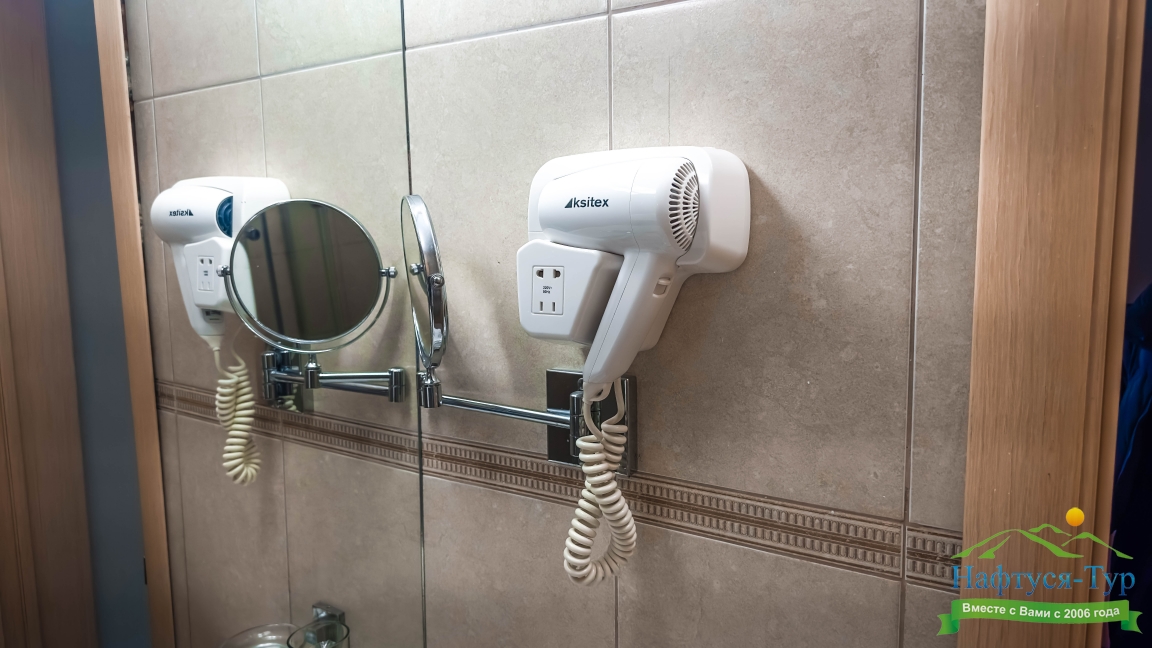 с душем, туалетные принадлежности, фен