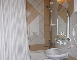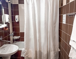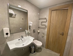 с ванной/душем, тапочки, туалетные принадлежности, фен