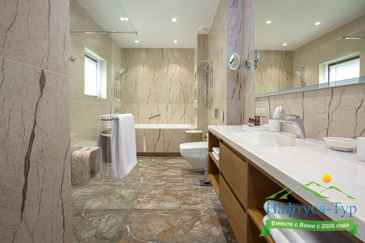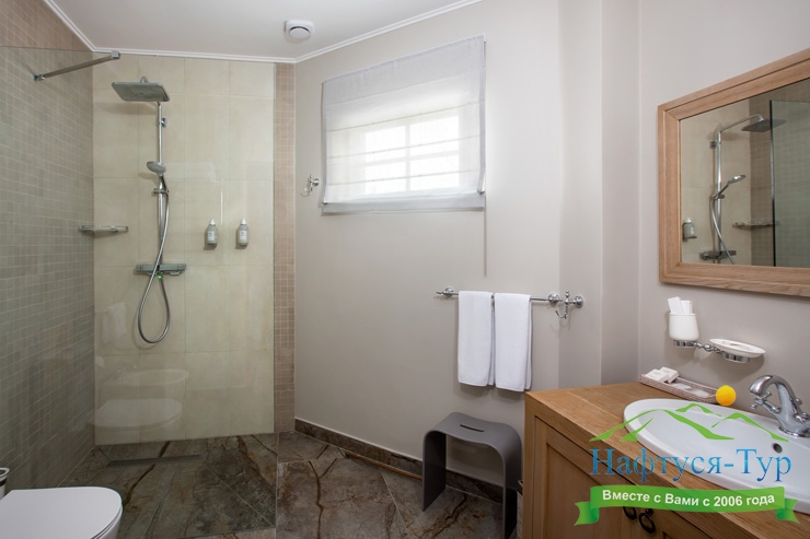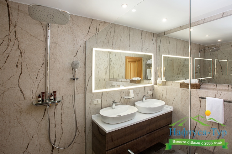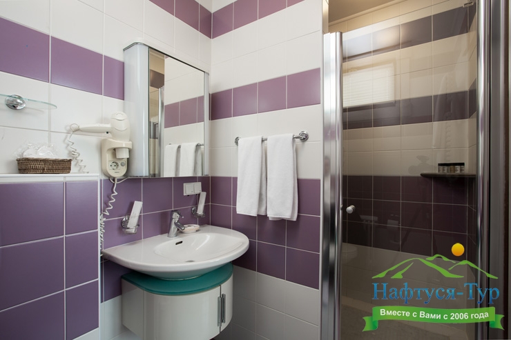 2 санузла, с душем, тапочки, туалетные принадлежности, халат