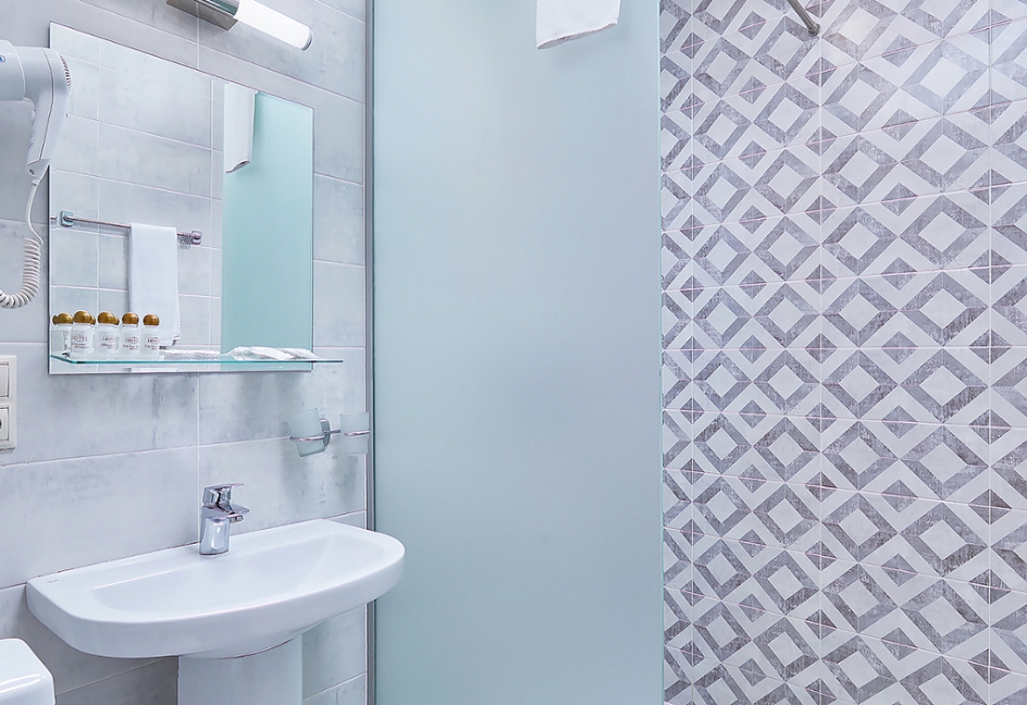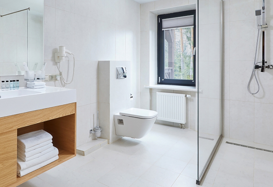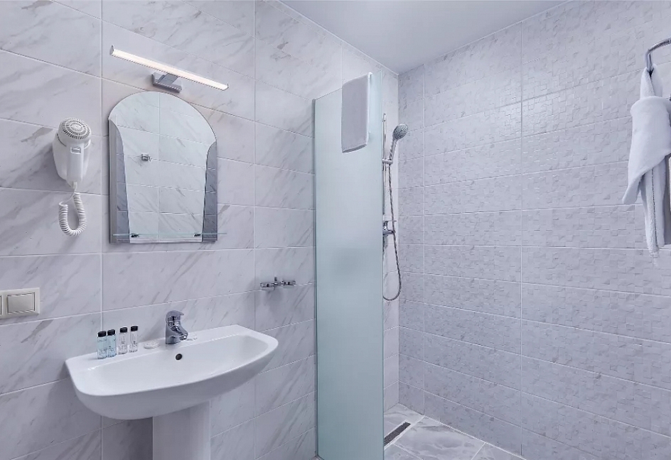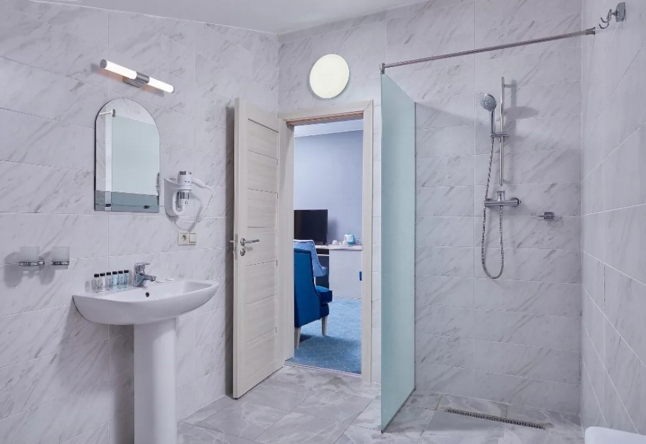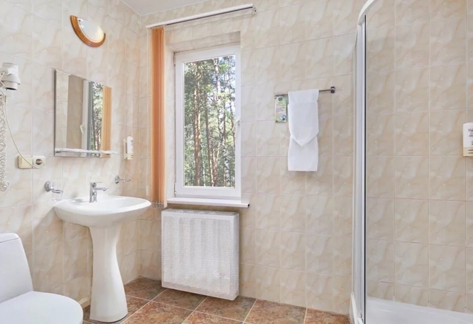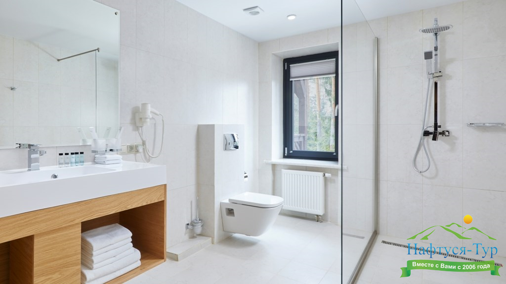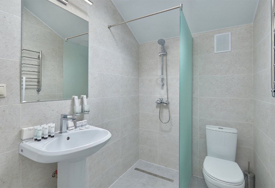 с ванной и душевой кабиной, туалетные принадлежности