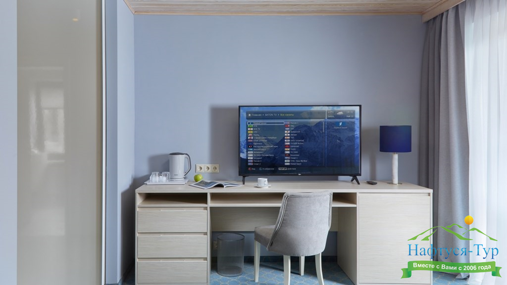 гладильная доска, кондиционер, телевизор, телефон, утюг, чайная станция