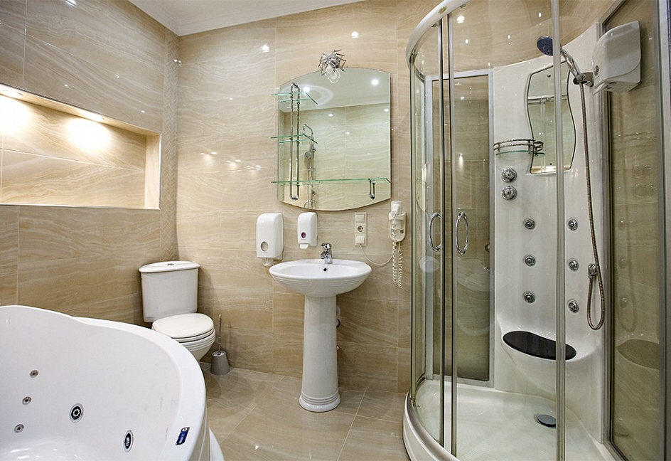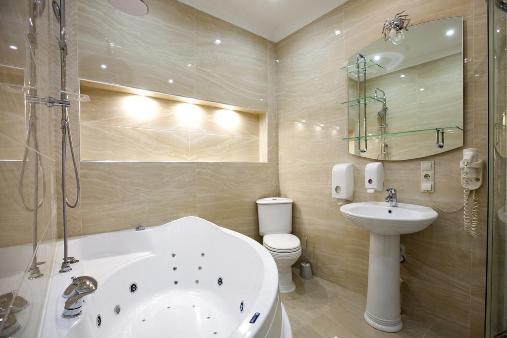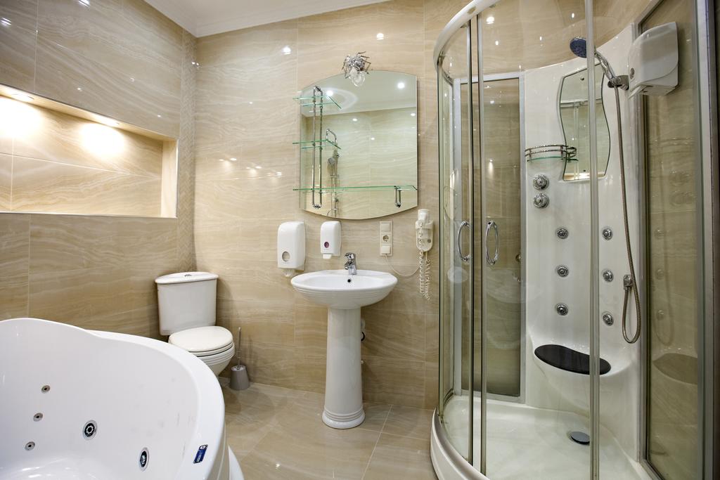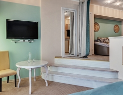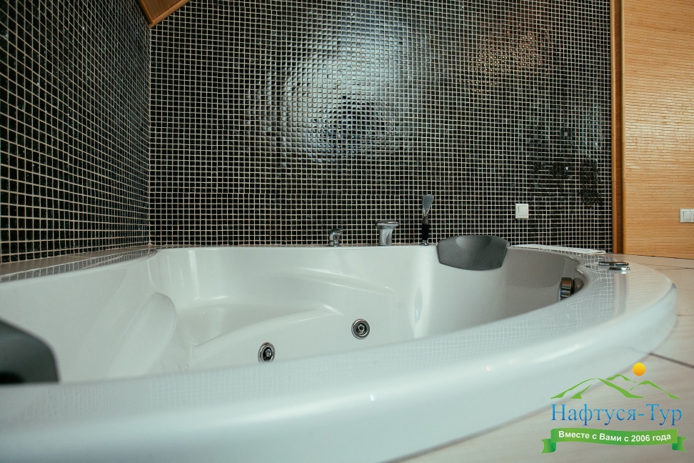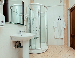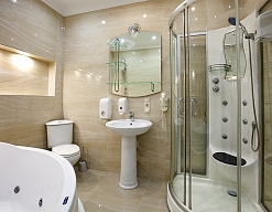 с джакузи, с душевой кабиной, тапочки, туалетные принадлежности, фен, халат