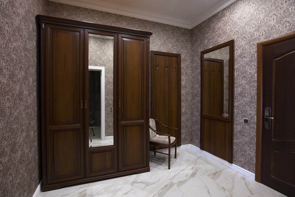 вешалка, диван раскладной, зеркало, кровать двуспальная/ две полутороспальные кровати, прикроватные тумбочки, стол, стулья, шкаф