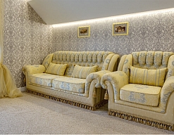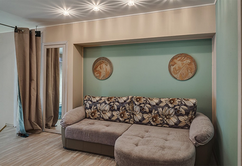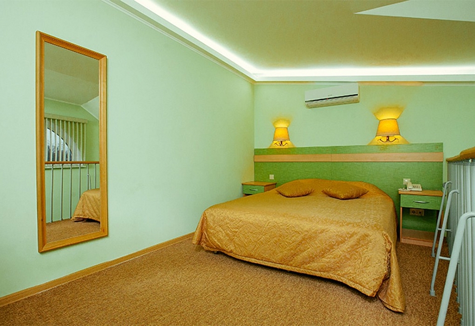 диван, зеркало, кровати односпальные /одна двуспальная кровать, прикроватные тумбочки, стол, стулья, тумба, шкаф