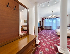 вешалка, кресло, кровать двуспальная/ две полутороспальные кровати, прикроватные тумбочки, стол, стулья, шкаф