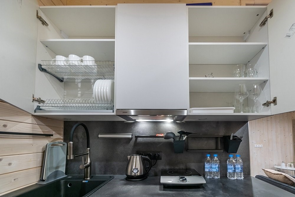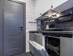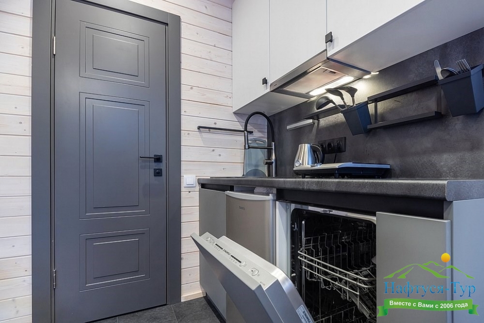 кондиционер, микроволновая печь, мини-холодильник, набор посуды, плита электрическая, посудомоечная машина, телевизор ЖК, чайный набор посуды, электрочайник