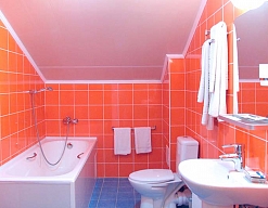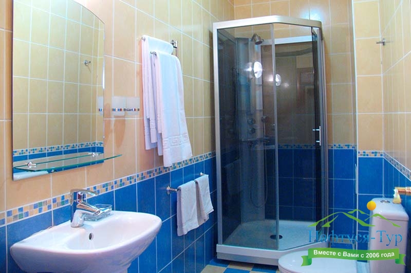 2 санузла, с ванной, с душем, тапочки, туалетные принадлежности, фен