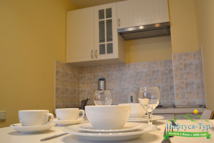 мини-холодильник, набор посуды, телевизор, телефон