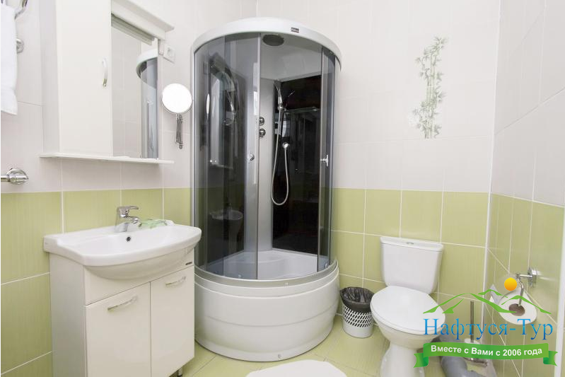 с душевой кабиной, туалетные принадлежности