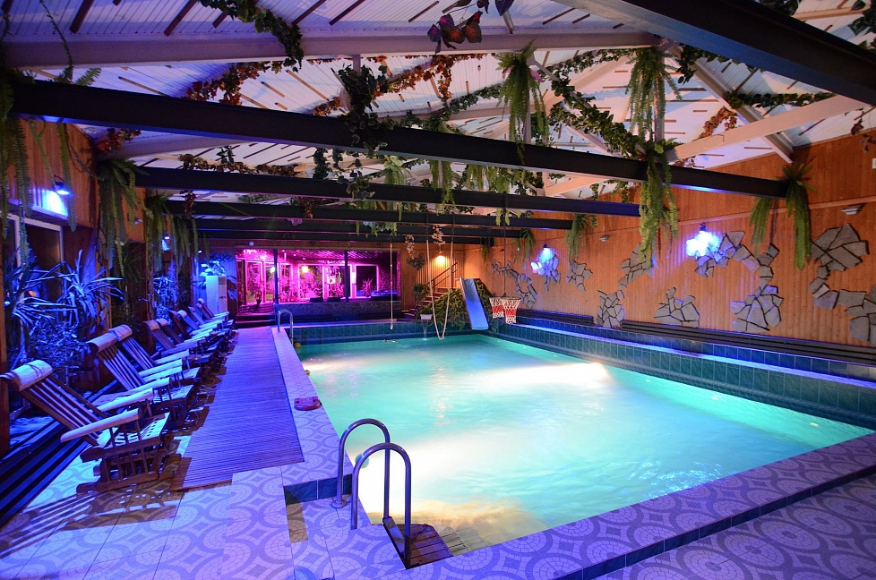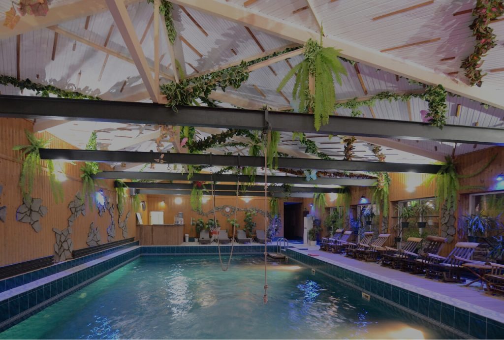 - крытый бассейн с летним пляжем