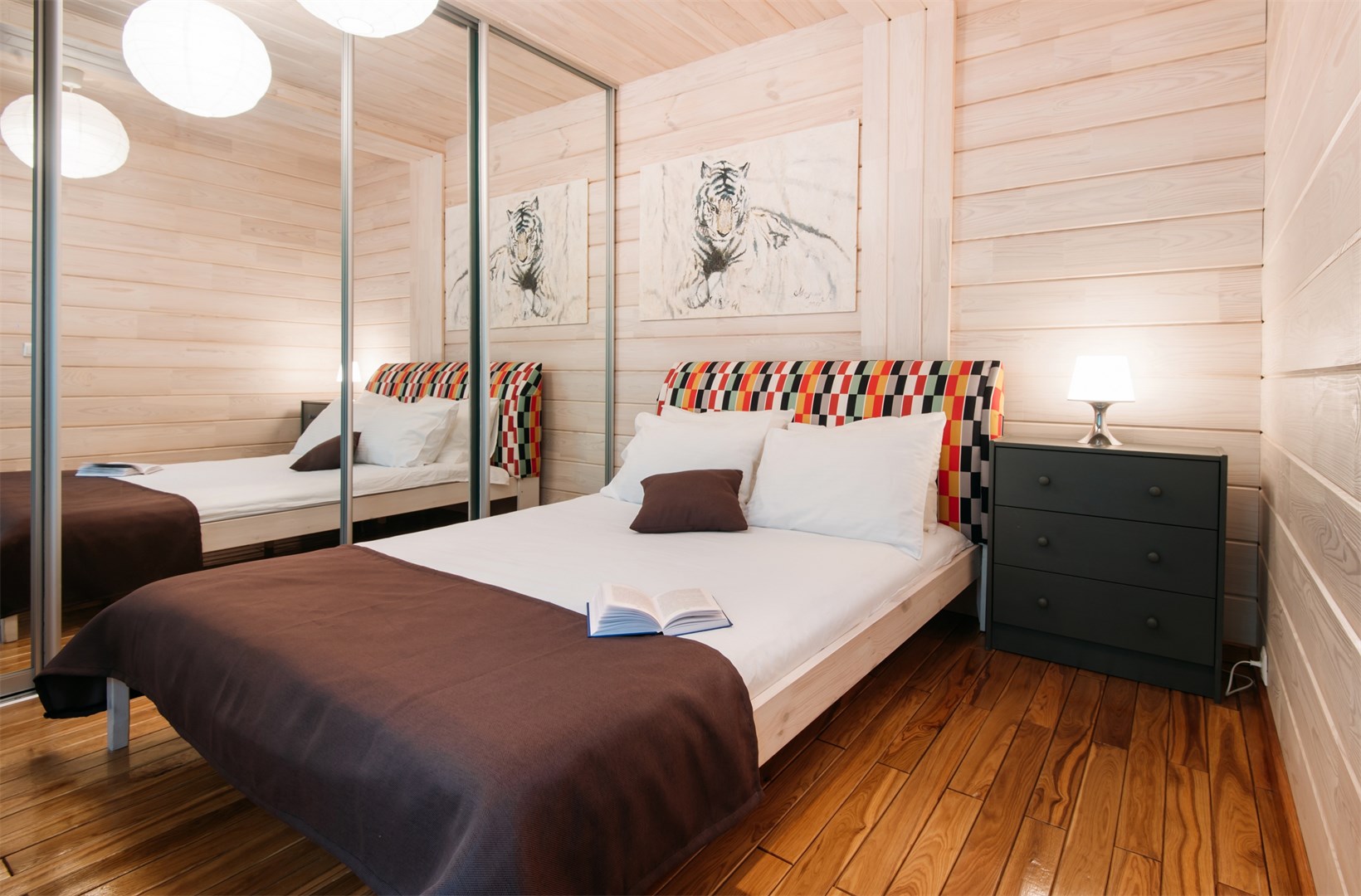 вешалка, зеркало, кровати односпальные /одна двуспальная кровать, прикроватные тумбочки, шкаф